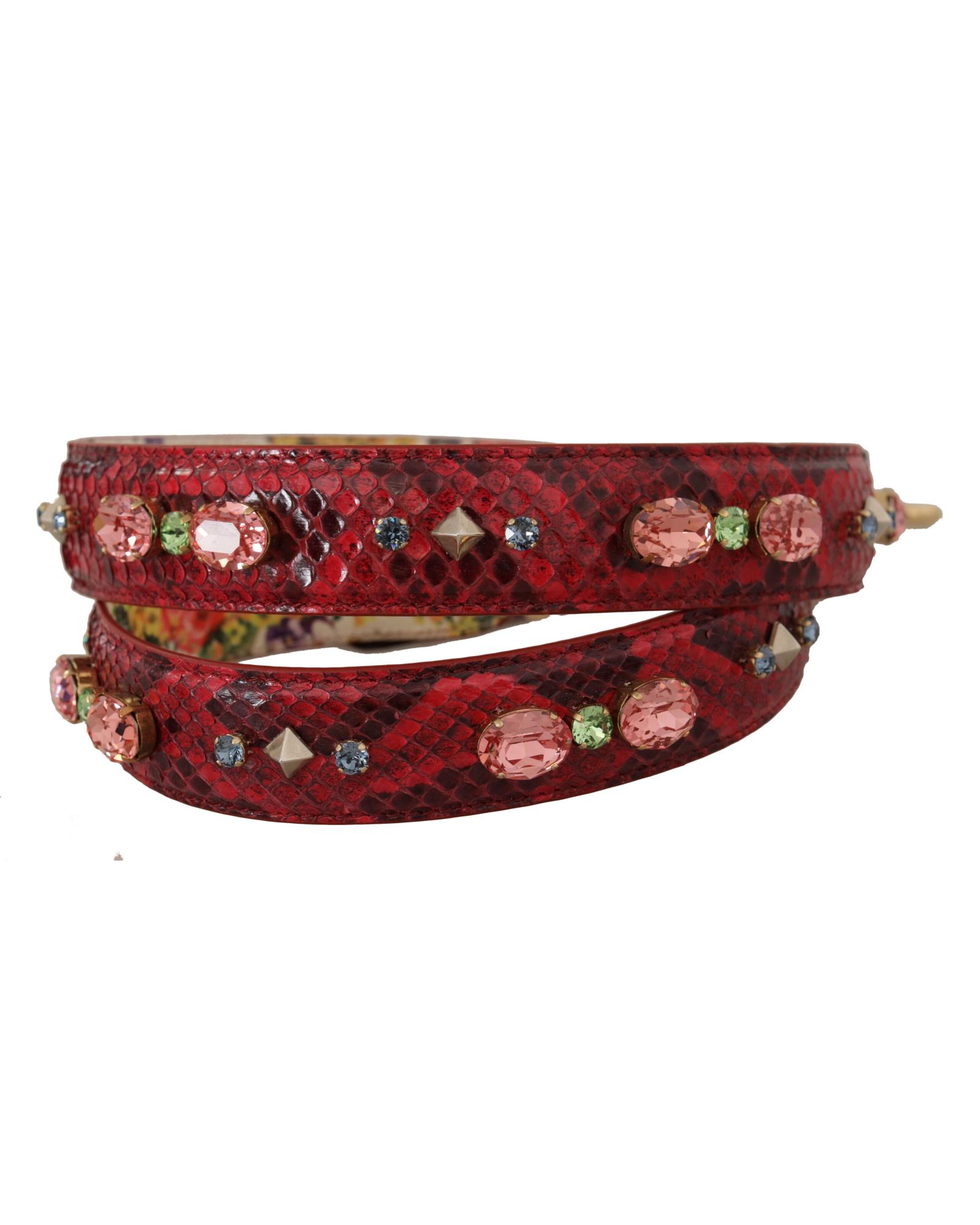 Dolce & Gabbana Women’s Red Exotic Leather Crystals Reversible Shoulder Strap – One Size
