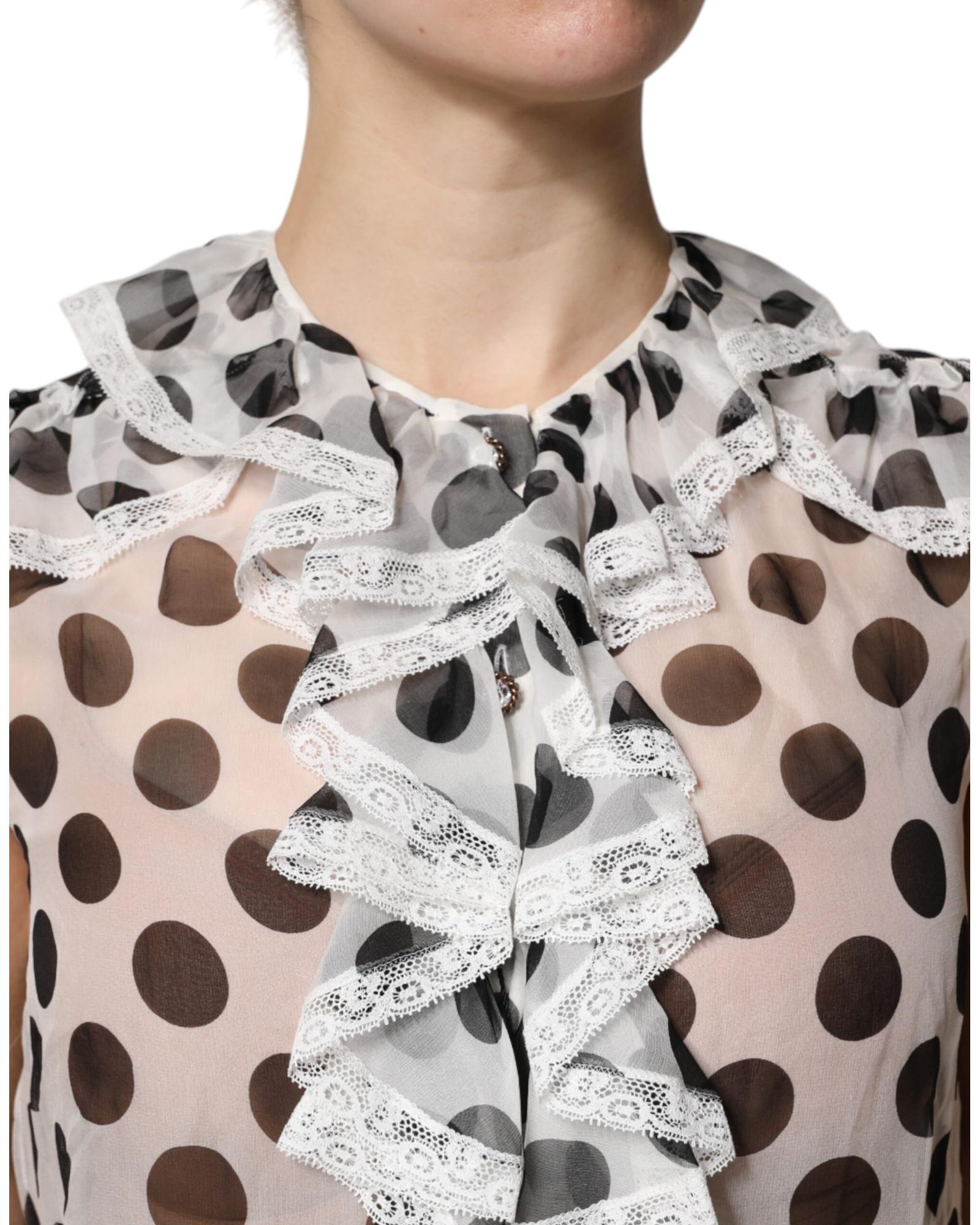 Dolce & Gabbana Women’s White Black Polka Dot Cotton Sleeveless Top – 40 IT