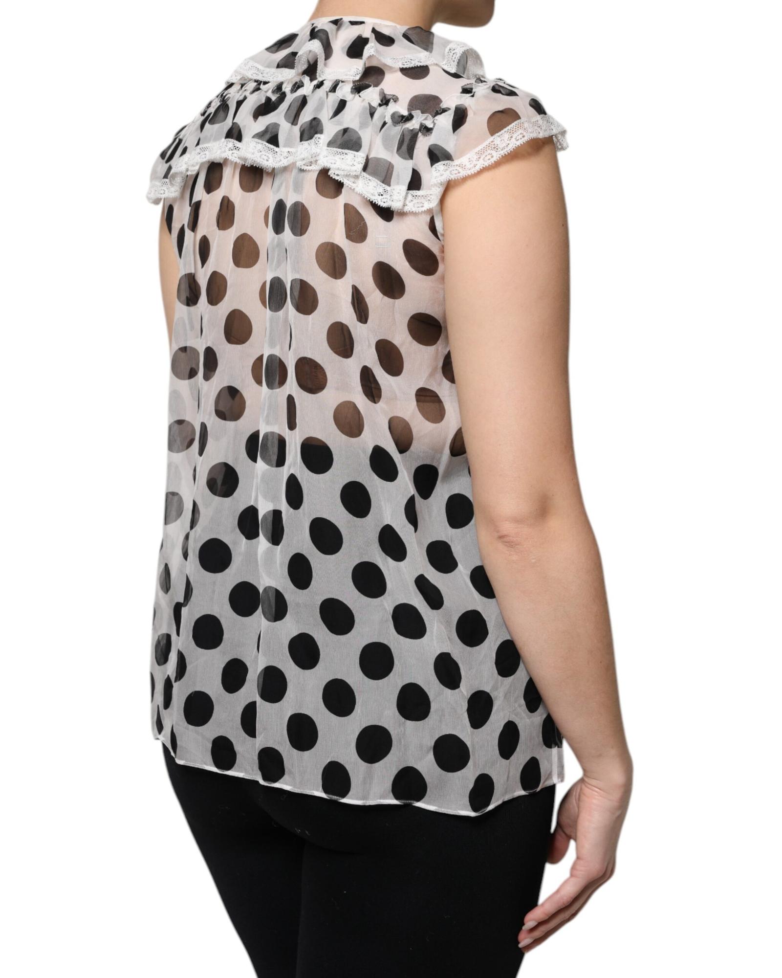 Dolce & Gabbana Women’s White Black Polka Dot Cotton Sleeveless Top – 42 IT