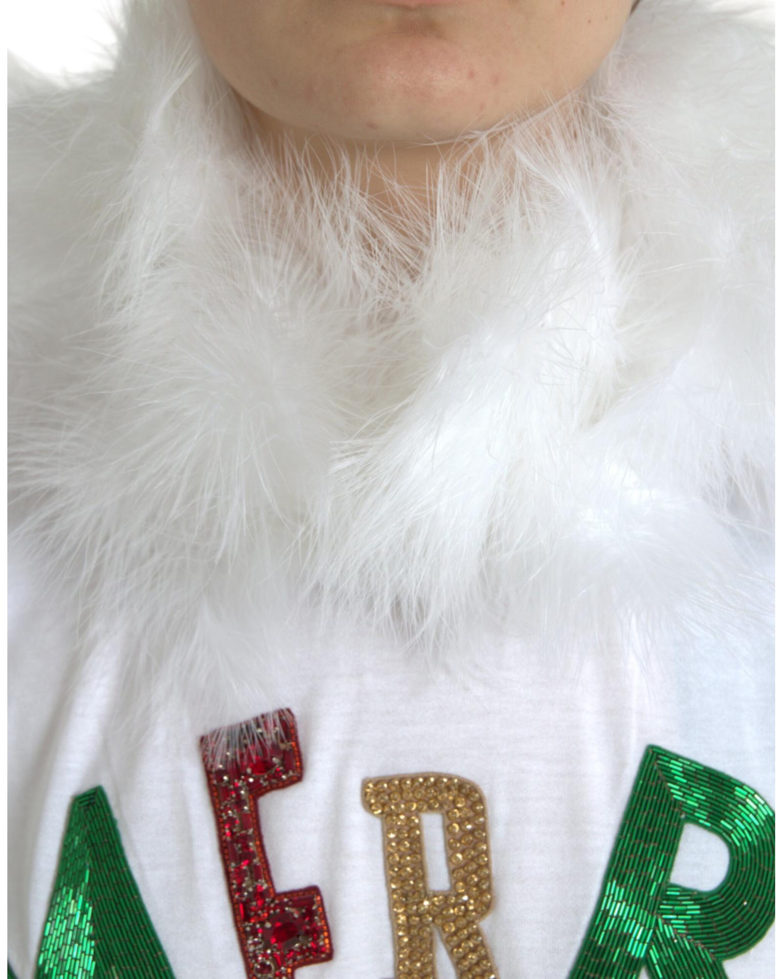 Dolce & Gabbana Women's White Cotton Christmas Sequin Fur T-shirt - 36 IT
