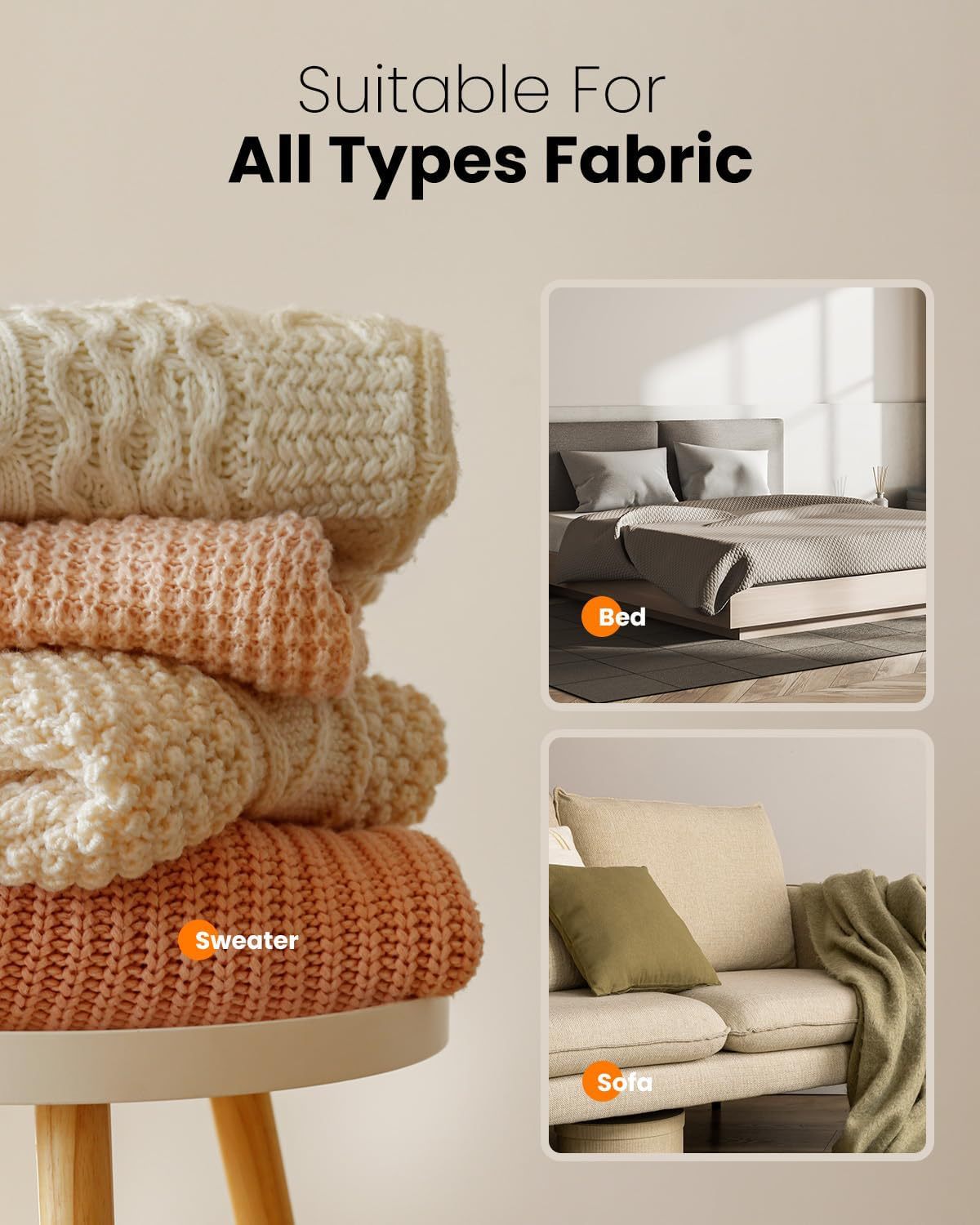 - Versatile Use: Suitable for a wide range of fabrics including clothing (sweaters, coats), upholstery (sofas), bedding, and more.