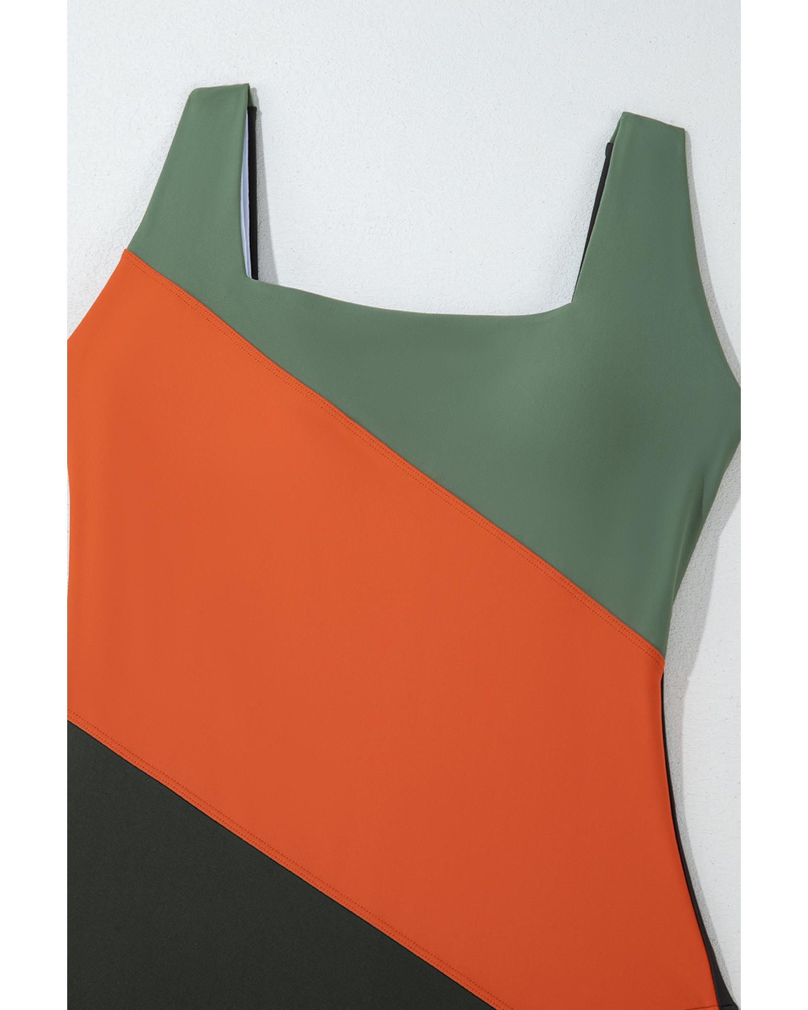 Duffel Green Color Block Padded Square Neck One Piece Swimsuit – XL