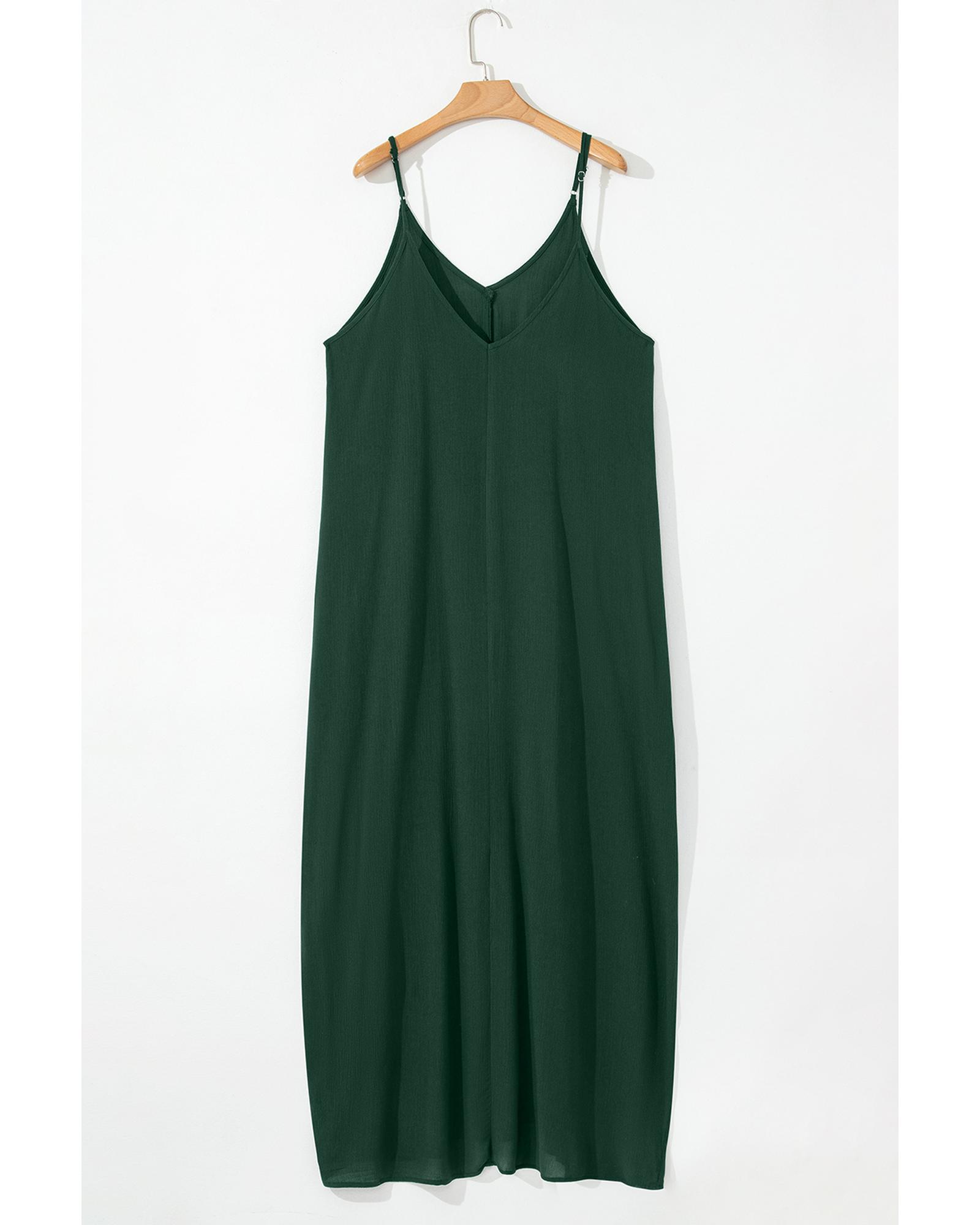 Duffel Green Spaghetti Straps Pocketed Slouchy Maxi Dress – L