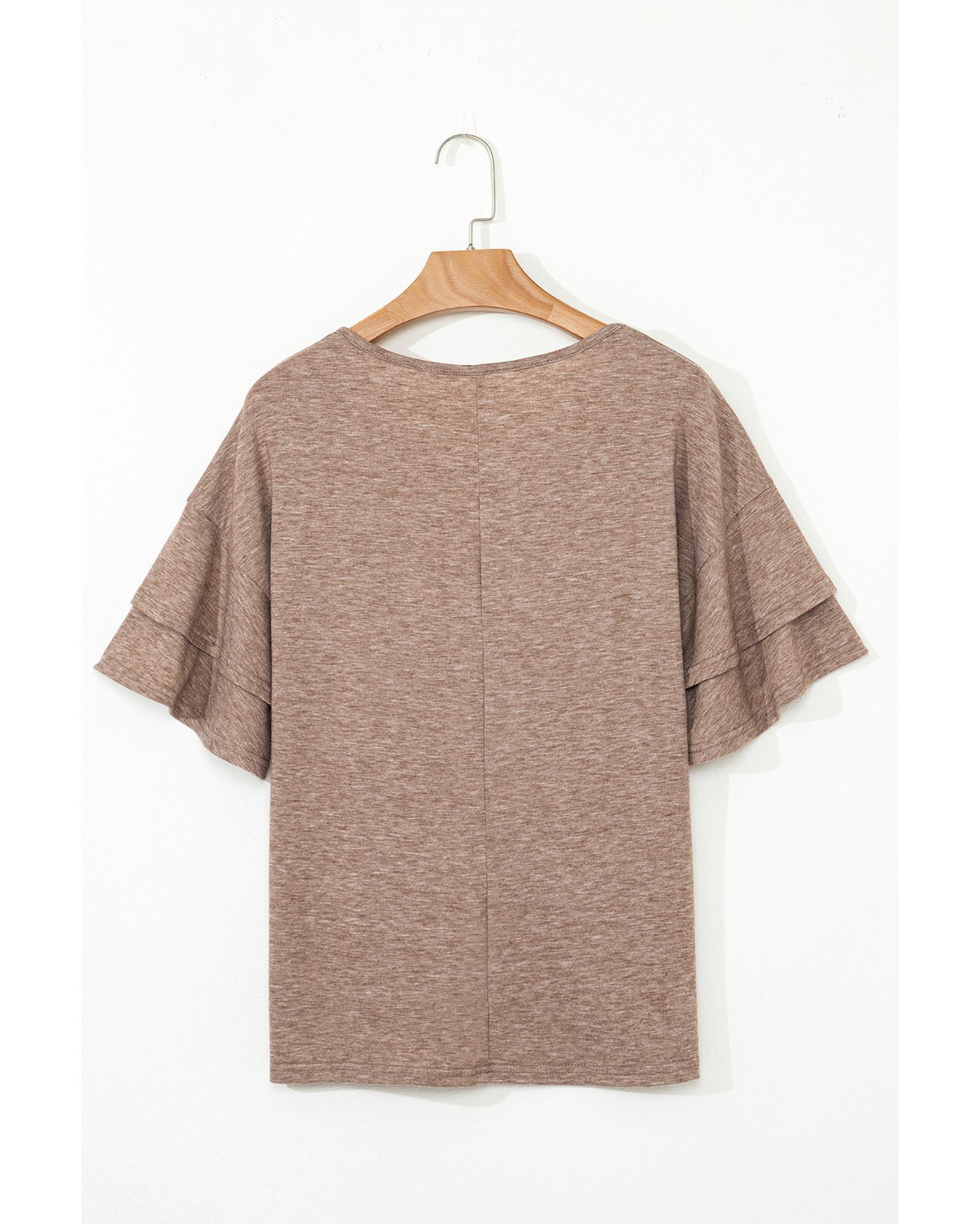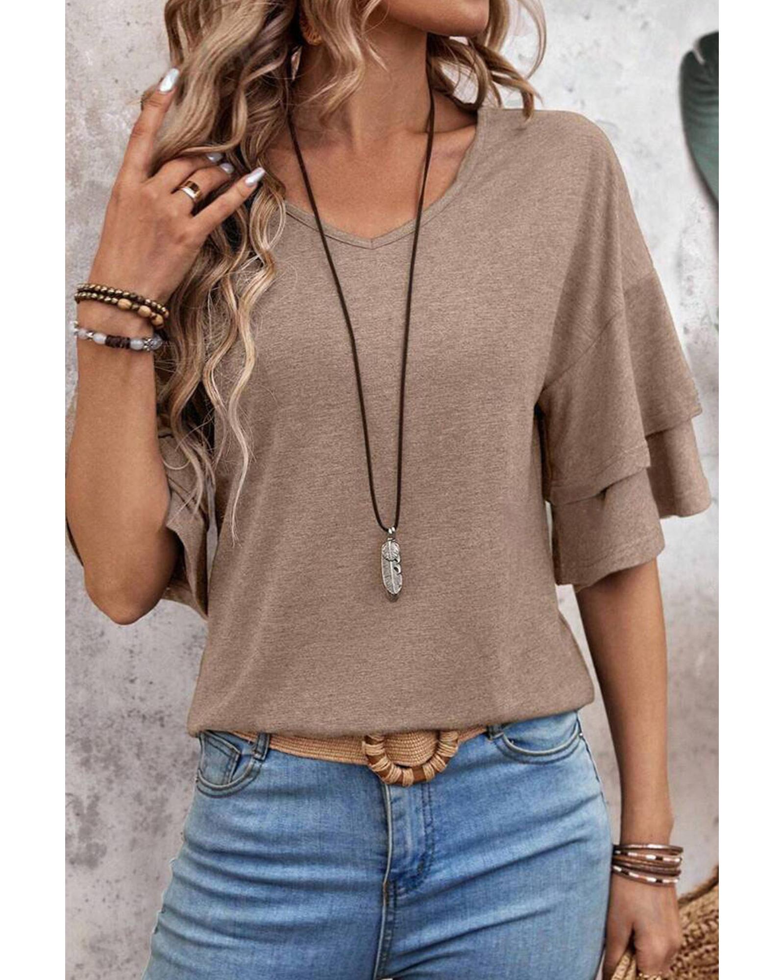 DUNE Solid Colour V-Neck Double Layer Sleeve Loose T-Shirt – L