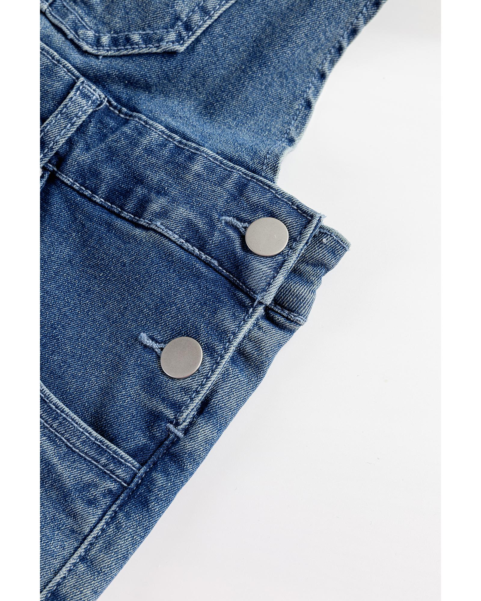 Dusk Blue Adjustable Tie Straps Cropped Wide Leg Denim Overalls – S