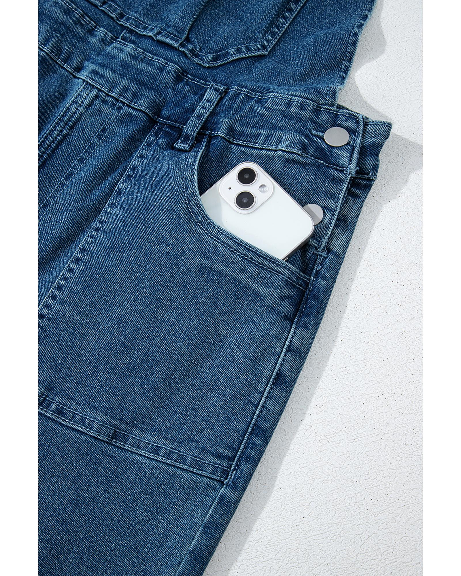 Dusk Blue Adjustable Tie Straps Cropped Wide Leg Denim Overalls – XL