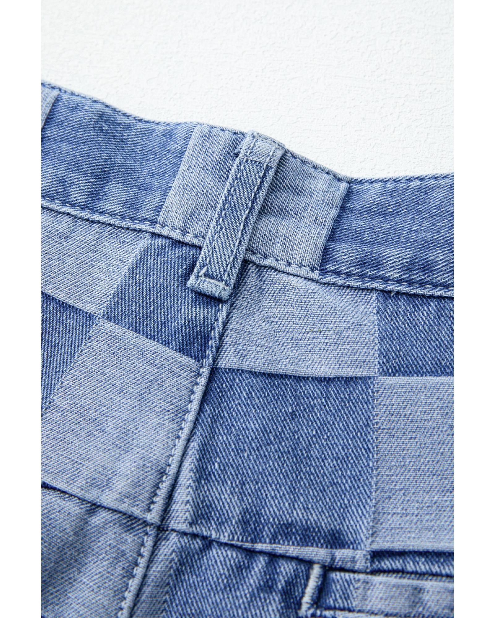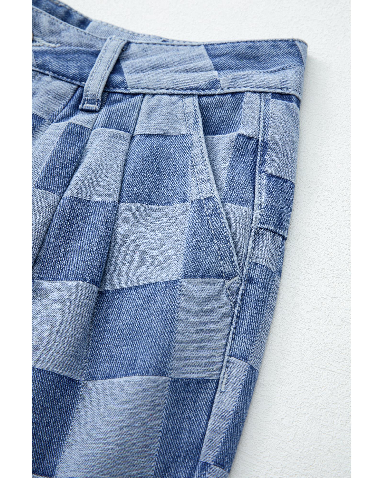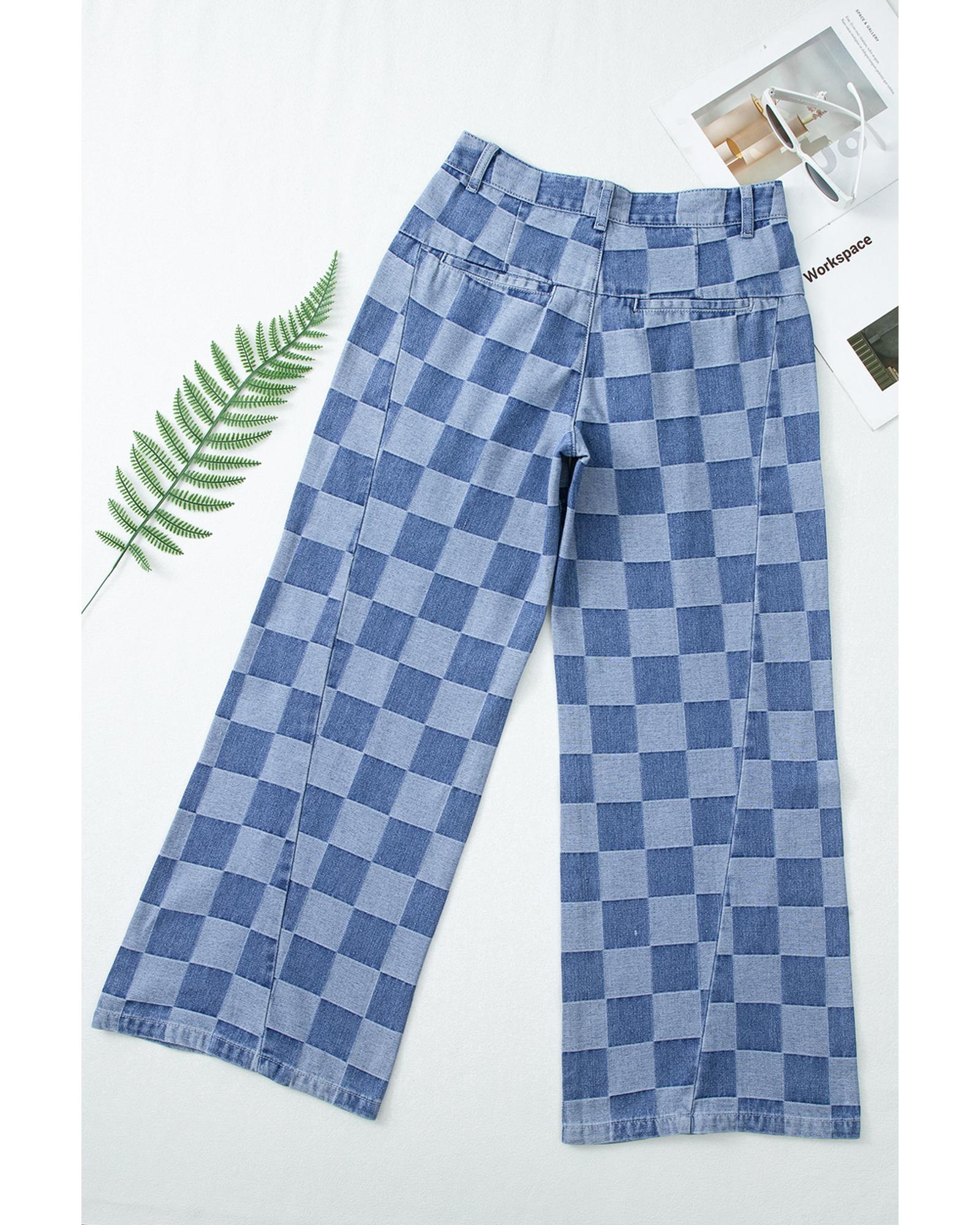 Dusk Blue Checkered Denim Wide Leg Jeans - 4 US