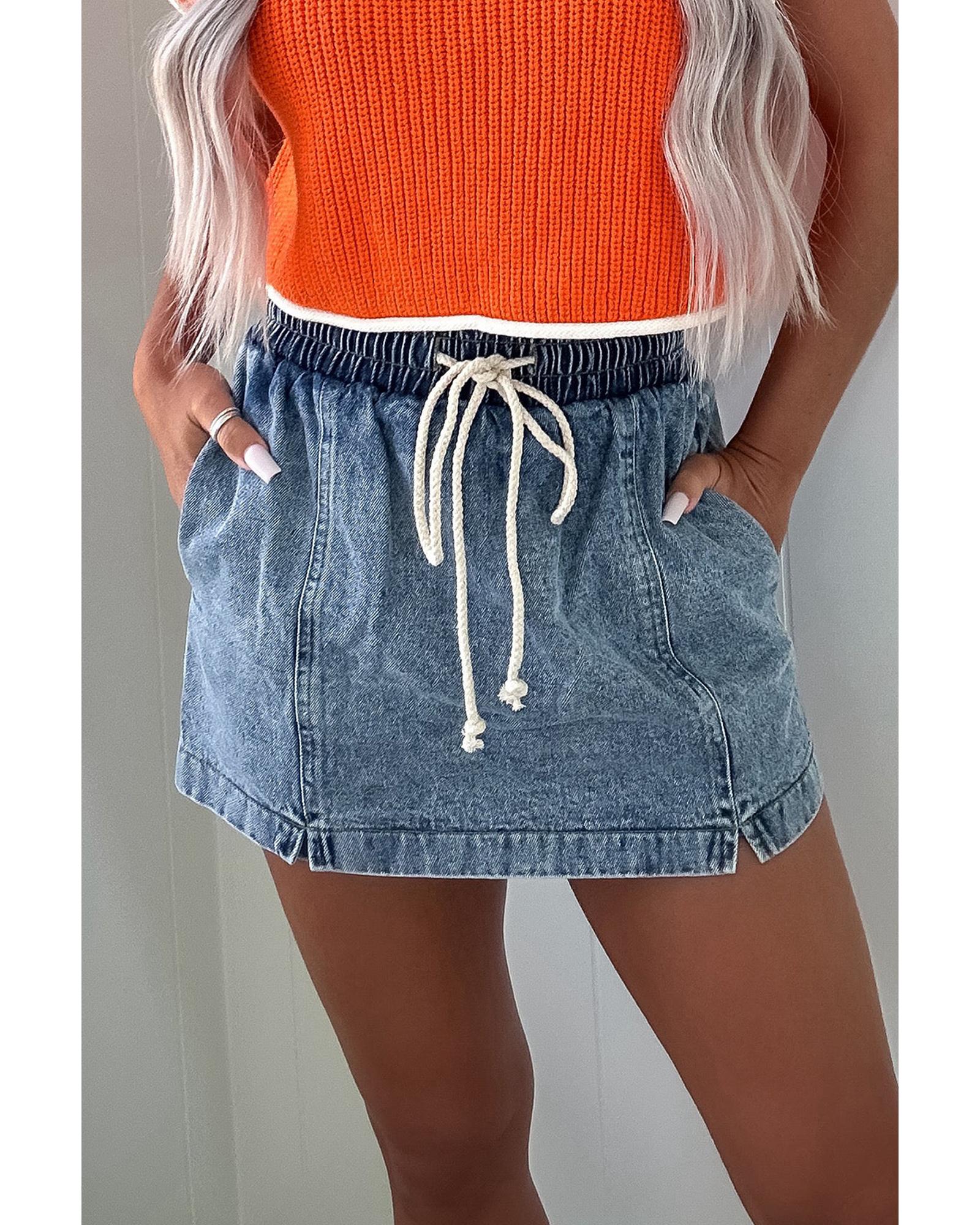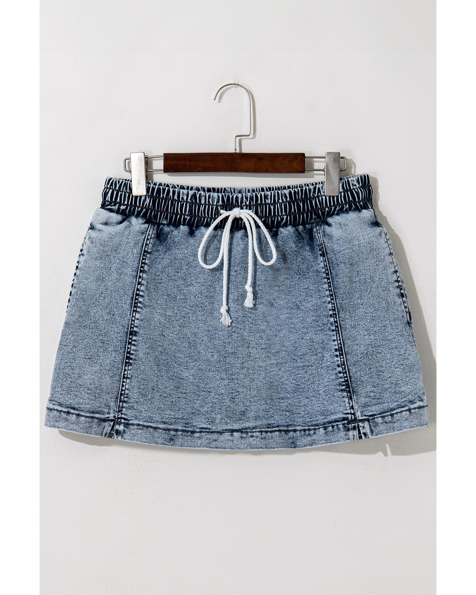 Dusk Blue Drawstring High Waist Pocketed Denim Shorts – 12 US