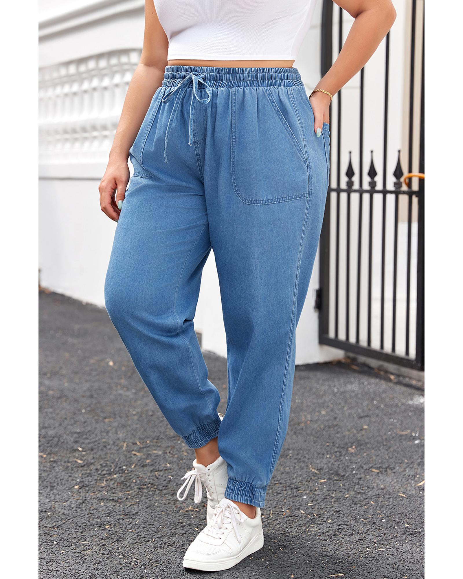 Dusk Blue Drawstring Waist Pocketed Plus Size Denim Joggers – 4X