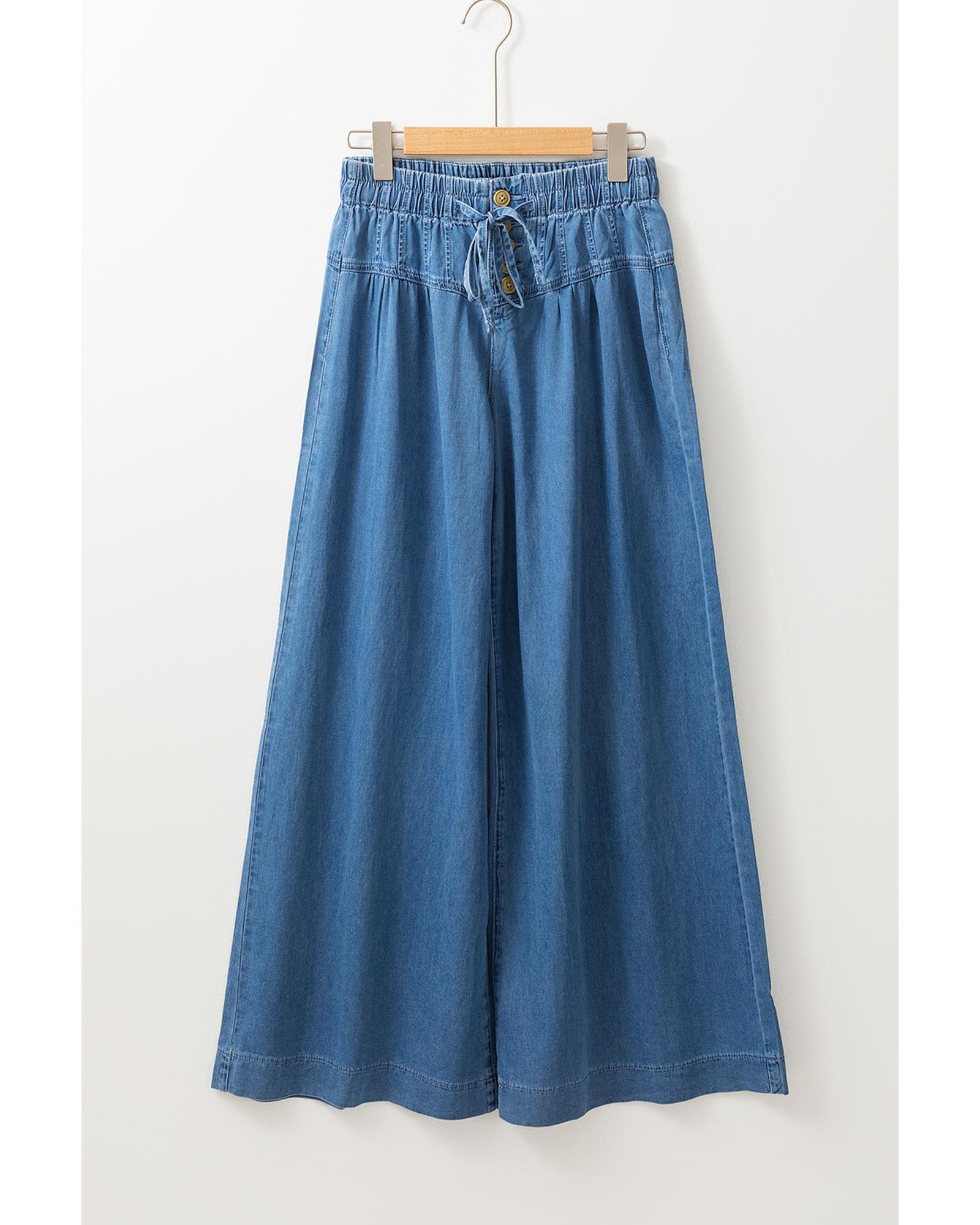 Dusk Blue Mineral Wash Button Fly Waist Wide Leg Jeans – 10 US