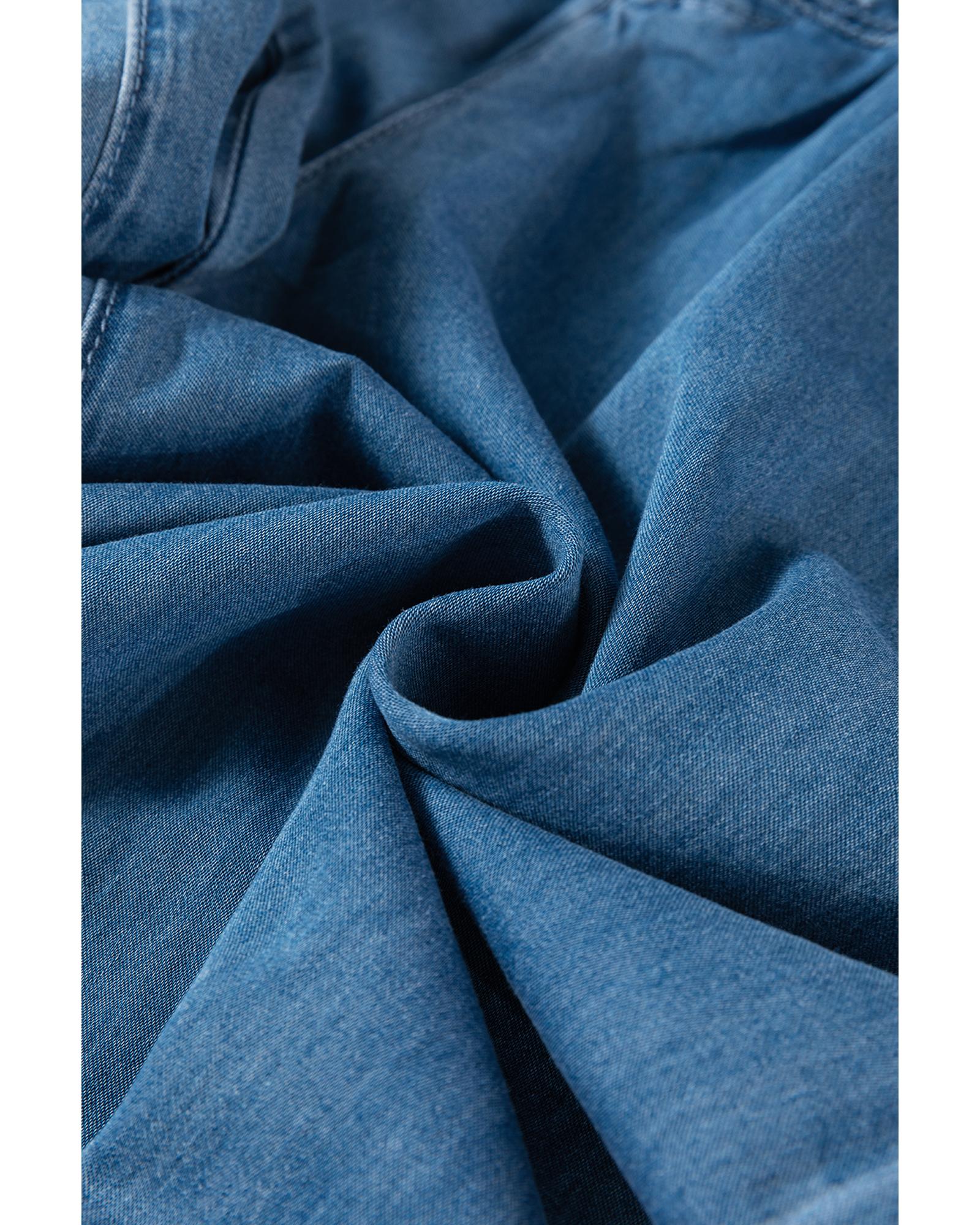 Sail Blue Side Pockets Lapel Collar Denim Jacket - L