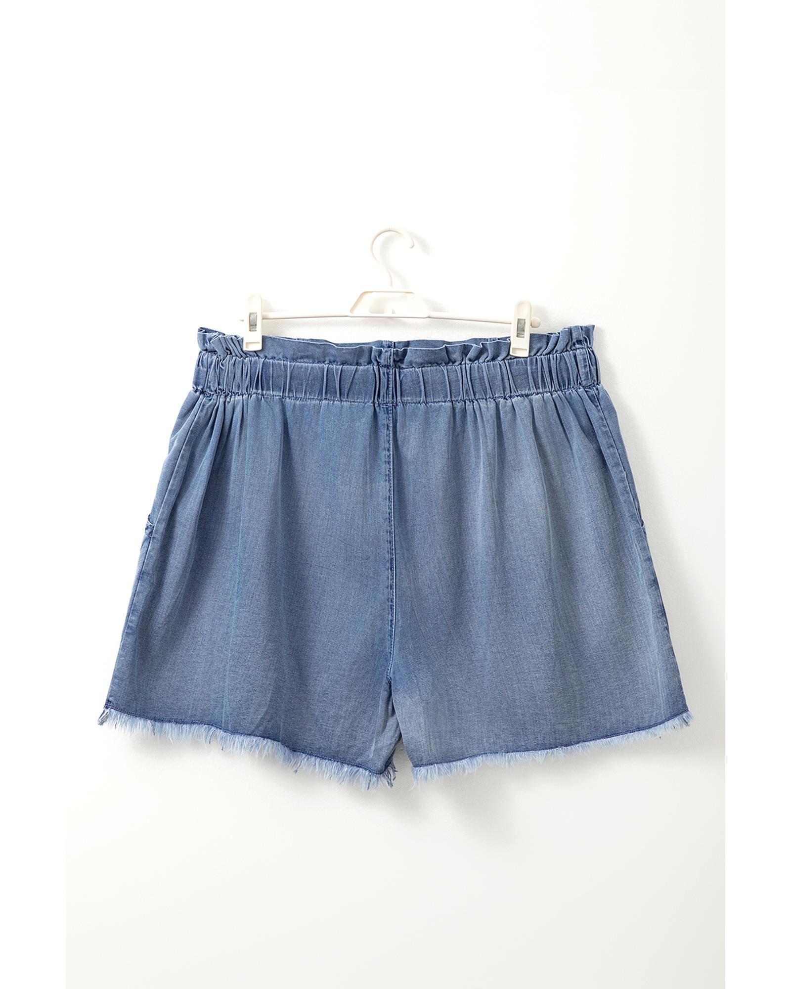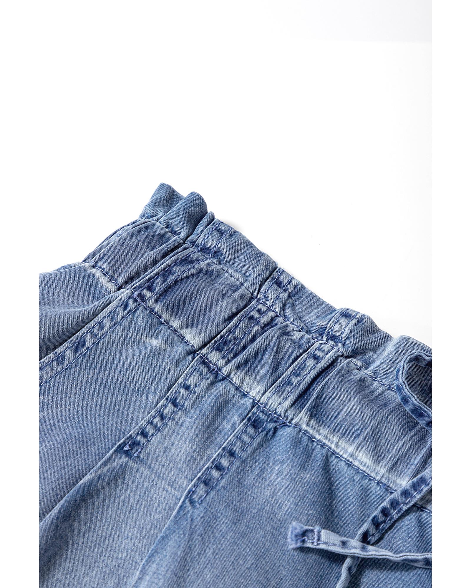 Dusk Blue Raw Hem Lace-up High Waist Plus Size Denim Shorts – 1X
