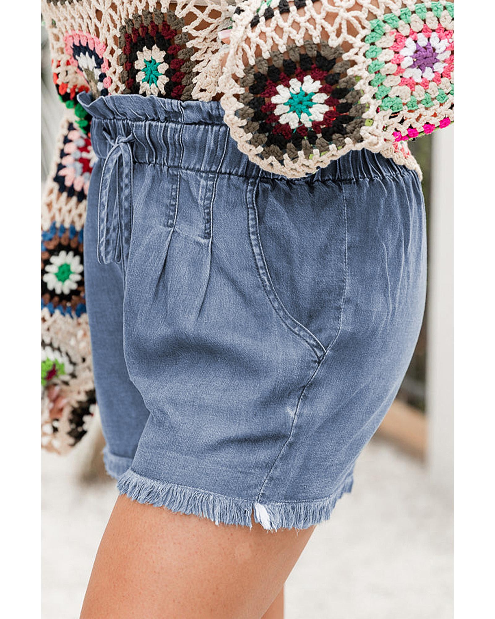 Dusk Blue Raw Hem Lace-up High Waist Plus Size Denim Shorts – 2X