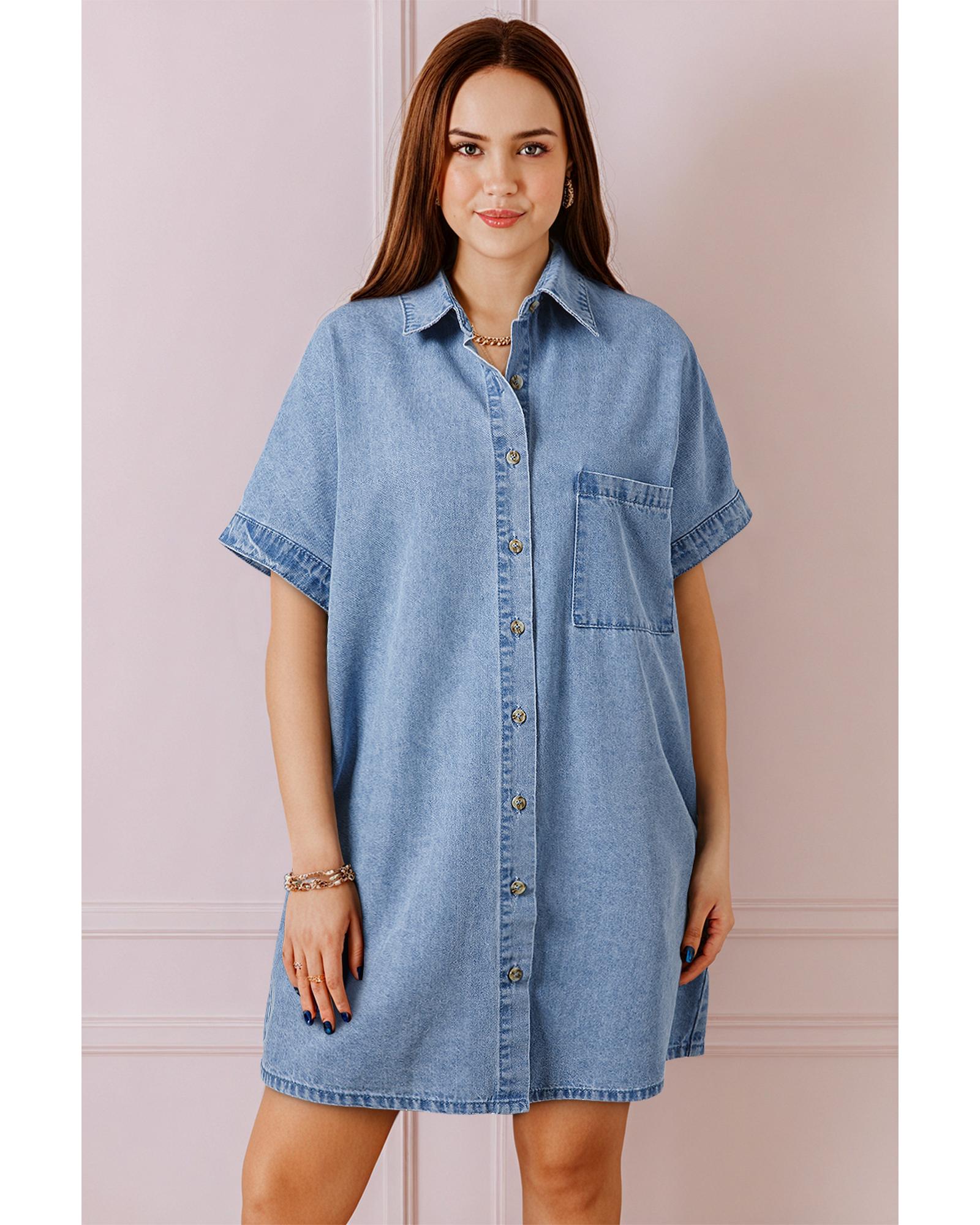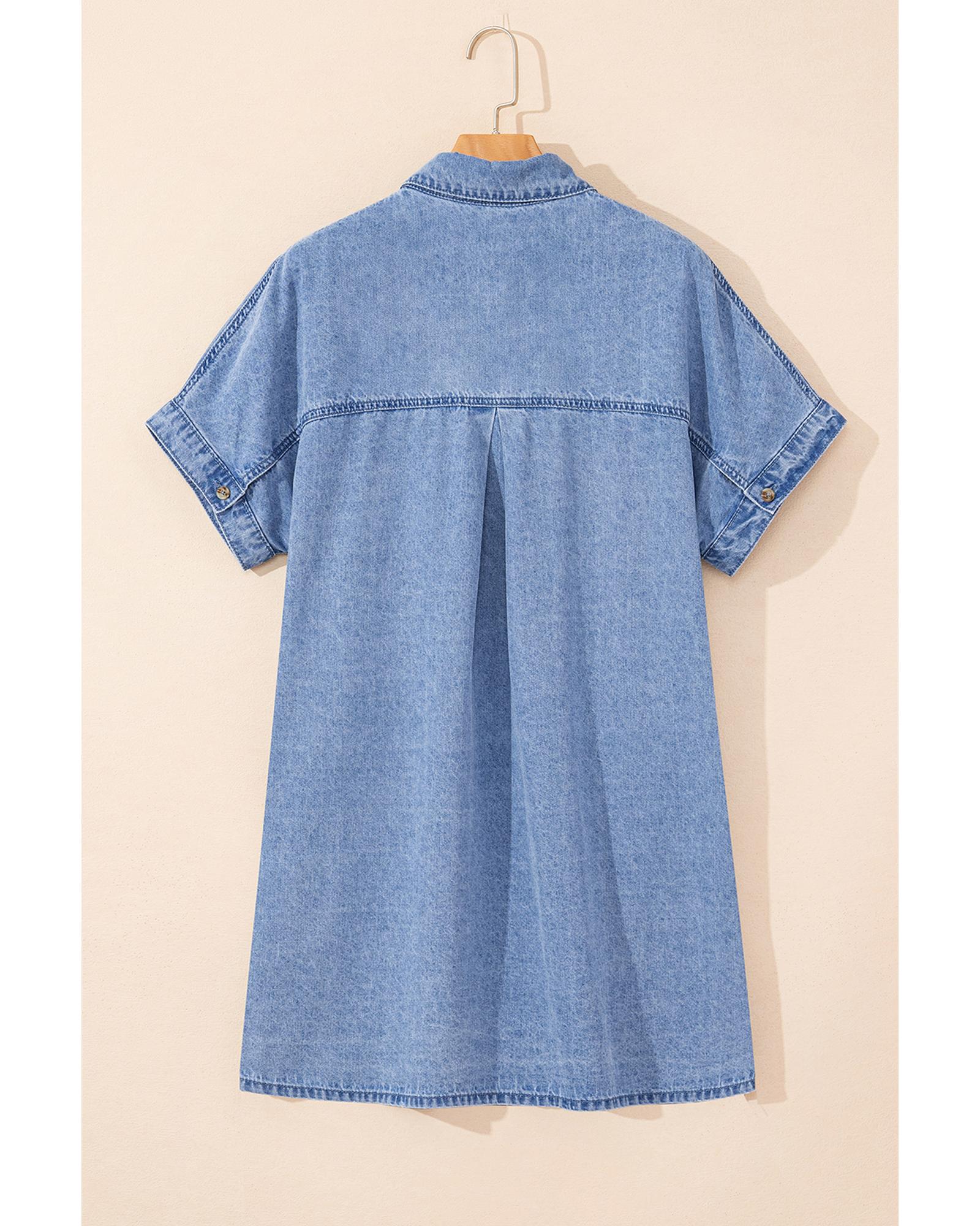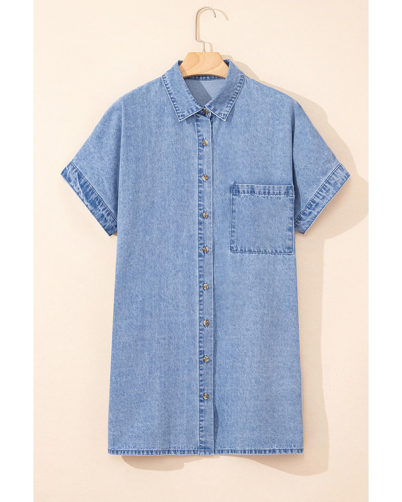 Dusk Blue Short Sleeve Pocketed Button up Denim Tunic Dress – S