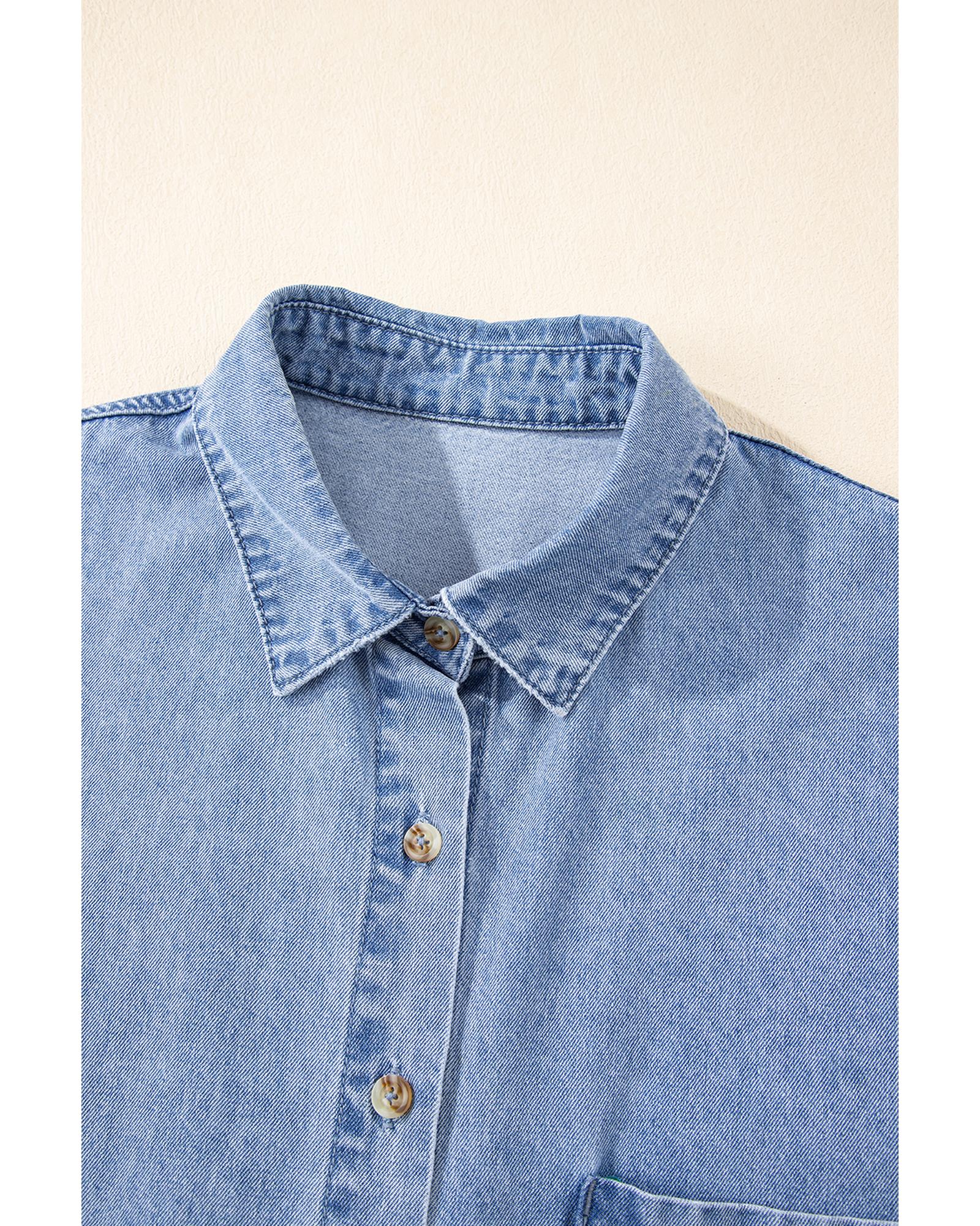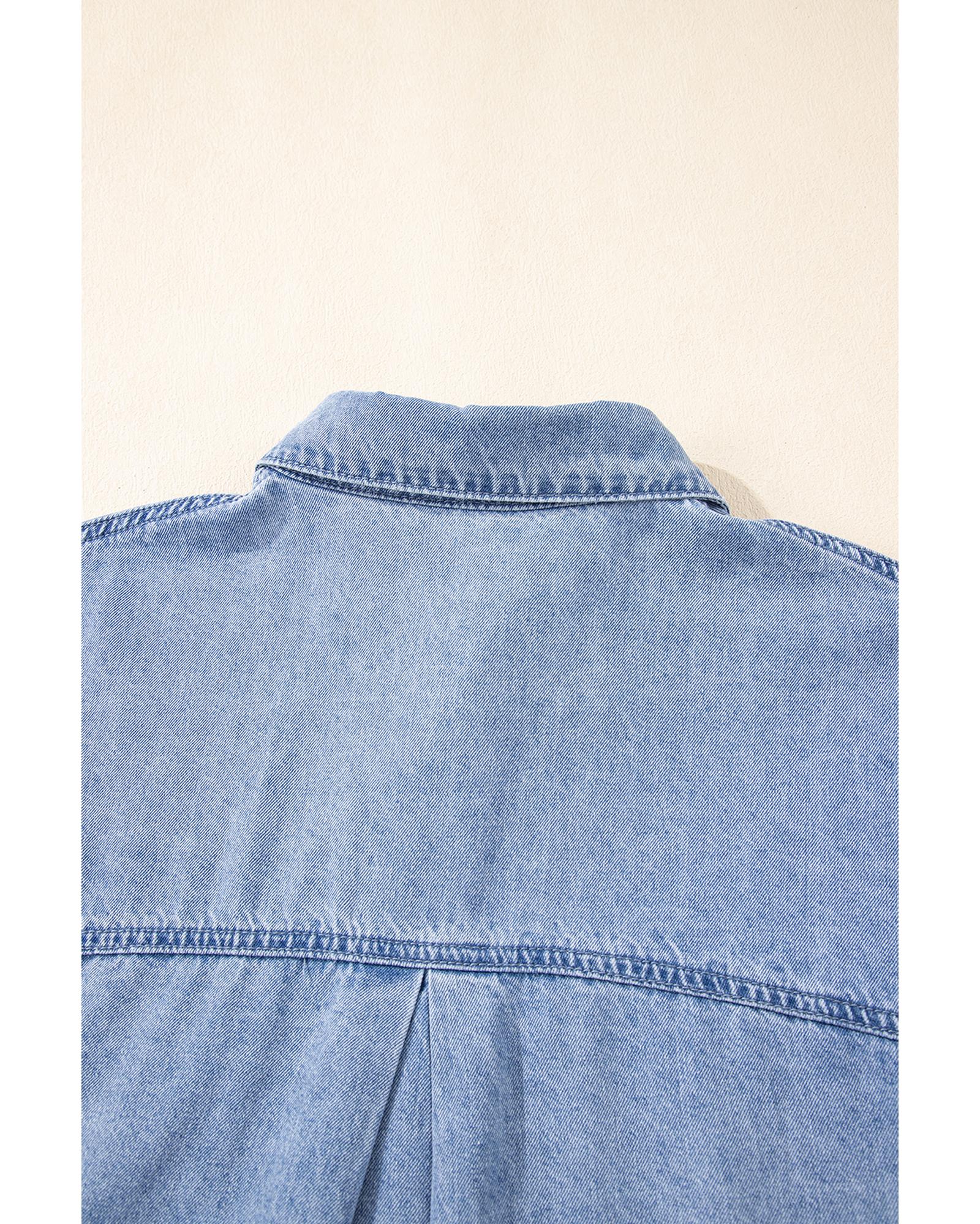Dusk Blue Short Sleeve Pocketed Button up Denim Tunic Dress - XL