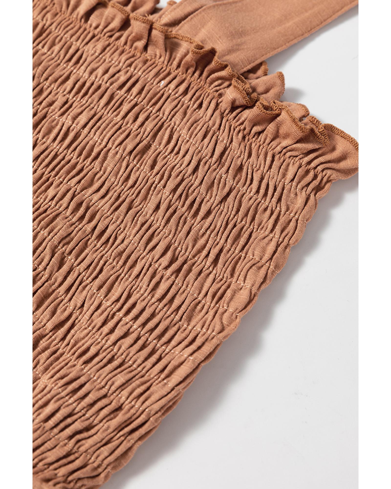 - Dusty Pink Ruffled Shirred Wide Leg Sleeveless Jumpsuit