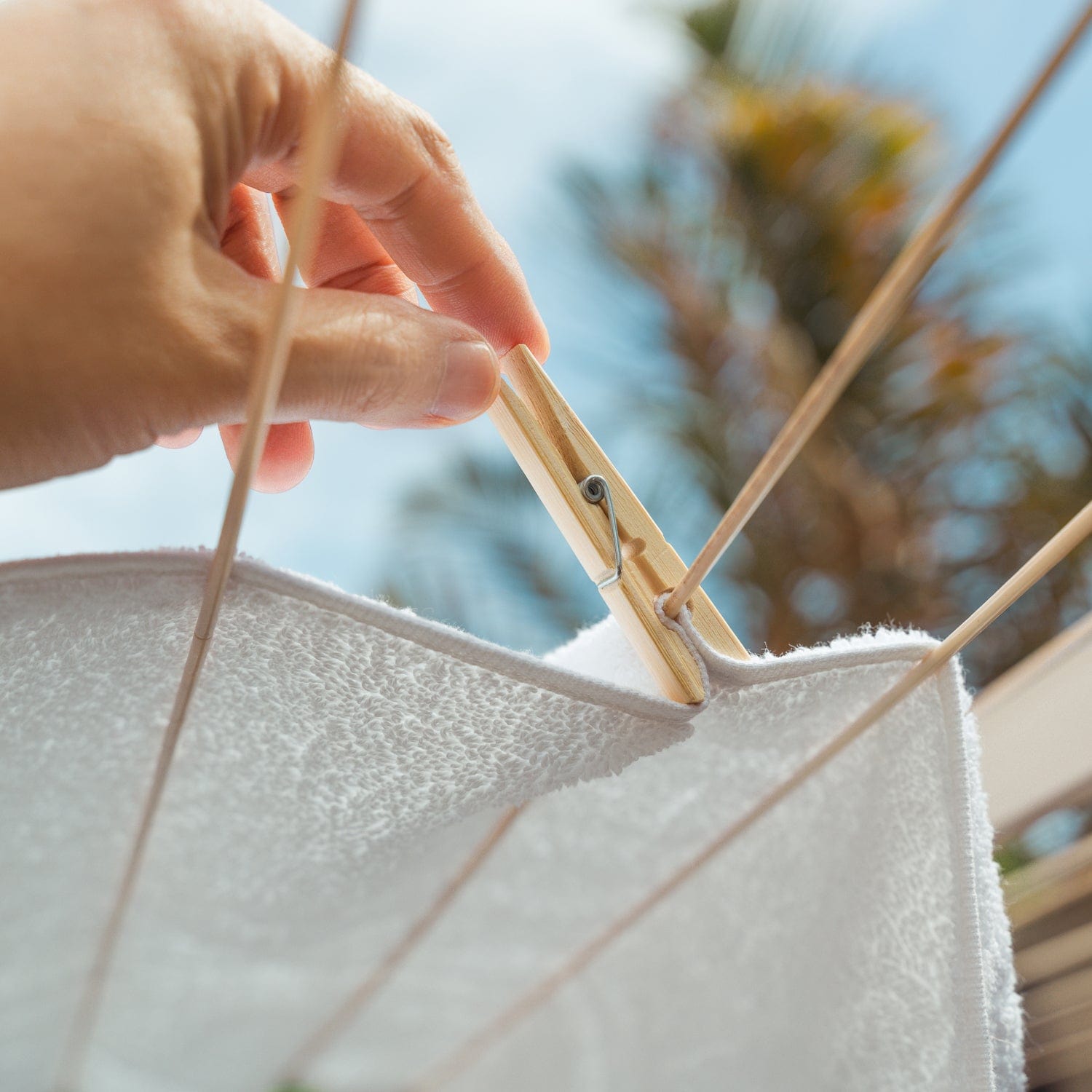 Hang your clothes in a perfectly Eco friendly way. These pegs are made from Natural Bamboo designed for durability and class!