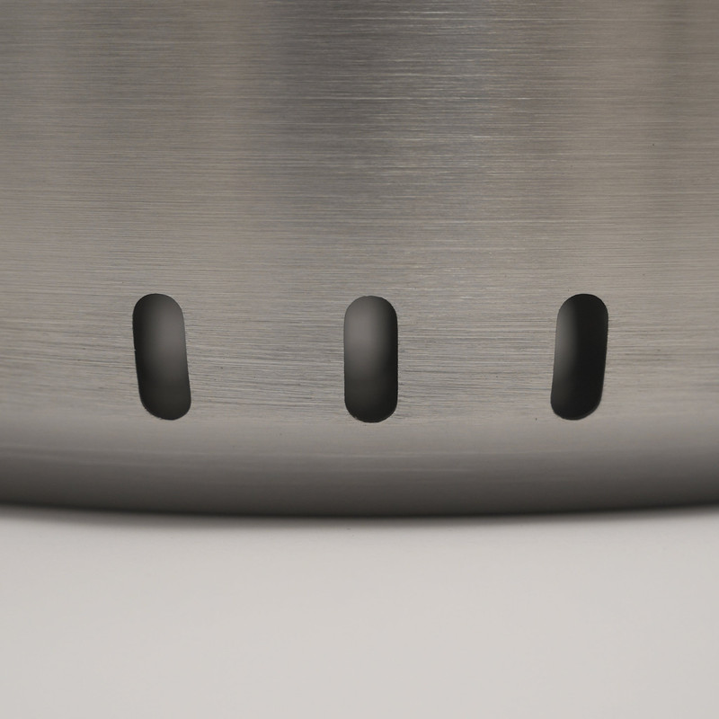 Double Wall Design with Secondary Combustion: The Ecoflame features an innovative double-wall construction, which re-introduces oxygen to the fire through strategically placed vent holes. This secondary combustion process ensures a fuller flame and minimizes smoke to a remarkable degree. Additionally, the air passage between the walls increases oxygen intake and combustion efficiency, creating a more efficient burn.