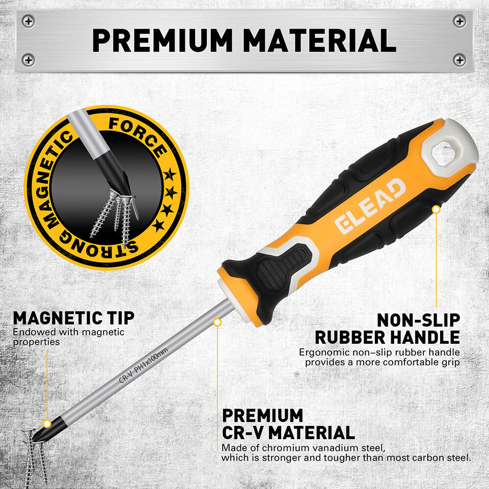 ELEAD 6Pcs Magnetic Screwdriver Set Phillips Slotted Non-Slip Handle Crv