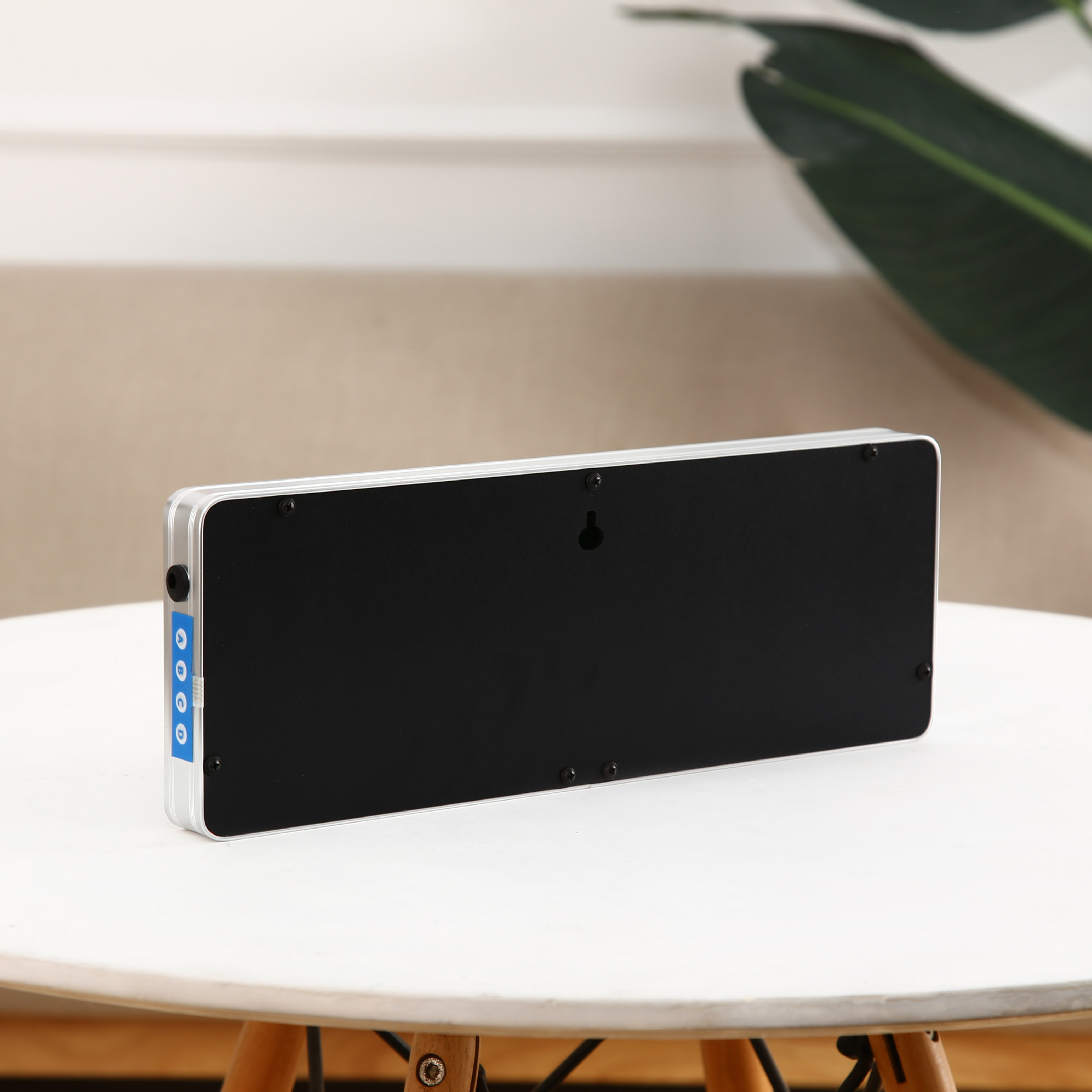 Measuring 30cm (width) x 25cm (height) x 1.6cm (depth), this clock is slim yet impactful, making it ideal for wall mounting or tabletop display. The perpetual calendar function ensures accurate date tracking for years to come, while the temperature display adds a practical touch for daily use. Crafted with a premium aluminum alloy shell, it’s both lightweight and durable, perfect for long-term use.
