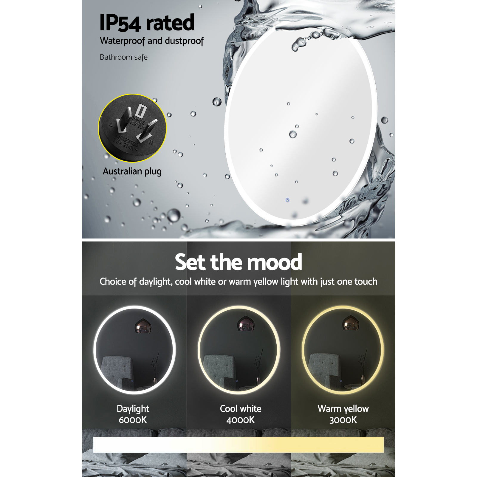 Embellir Wall Mirror 70cm with Led light Makeup Home Decor Bathroom Round Vanity