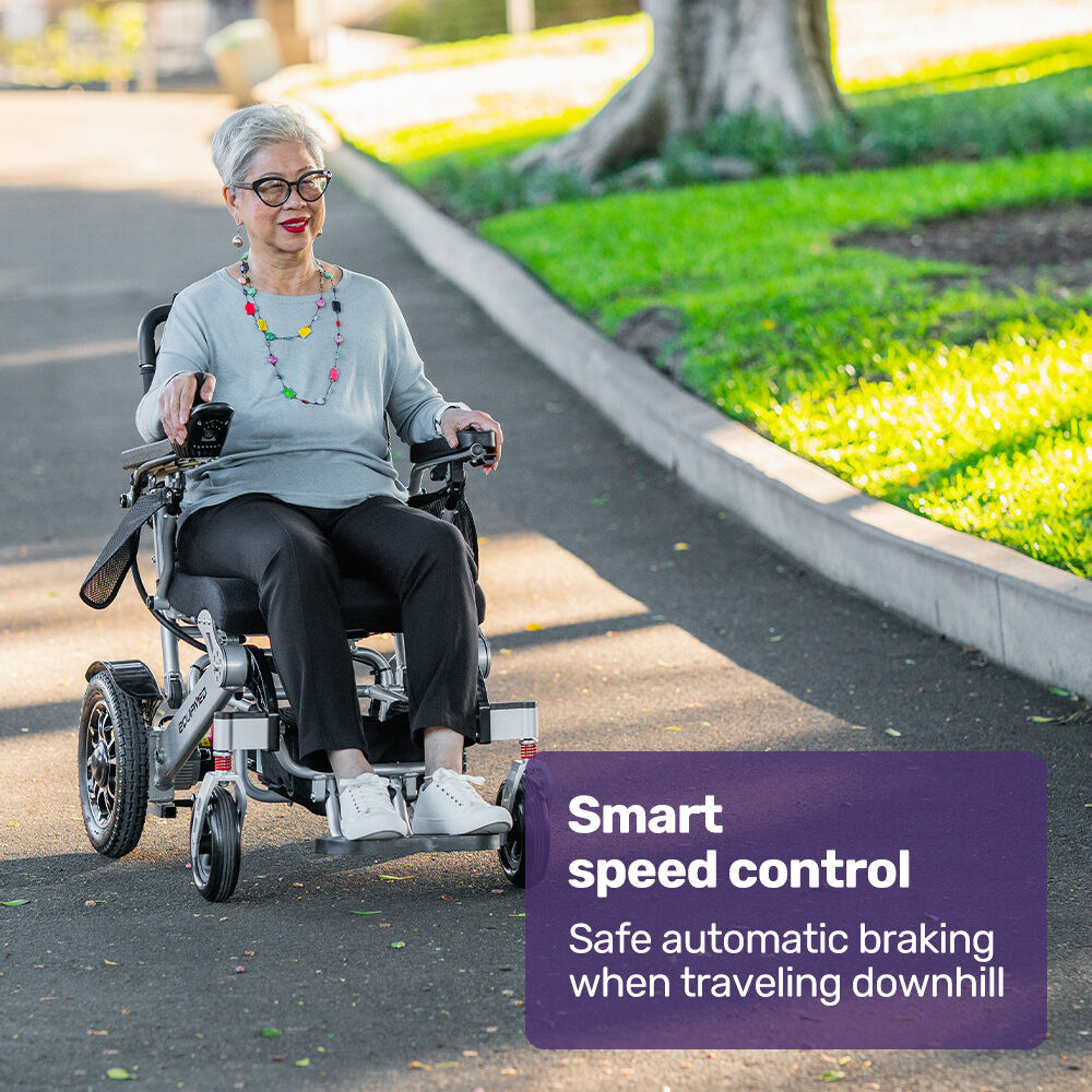 EQUIPMED Power Electric Wheelchair, Airline Approved Wheel Chair, Lightweight, Folding, Long Range, Lithium Batteries, Black & Silver