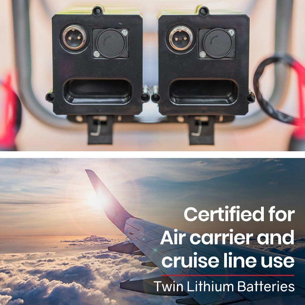 With a dual lithium battery configuration, this device meets the safety standards that allow it to be checked as baggage on most planes and used on cruise liners (be sure to confirm with your travel provider prior to making a booking).