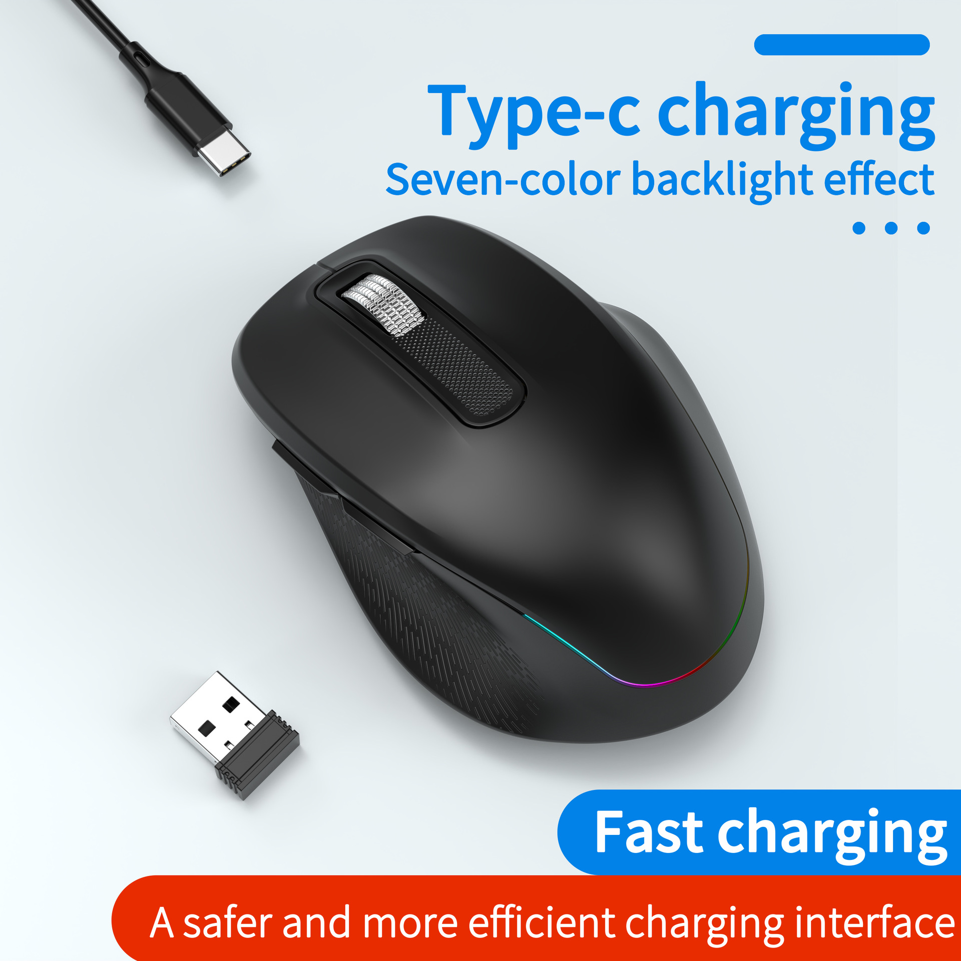 Equipped with a modern Type-C charging port, this mouse offers fast and efficient recharging. Say goodbye to disposable batteries and enjoy the convenience of a widely compatible, reversible connector.