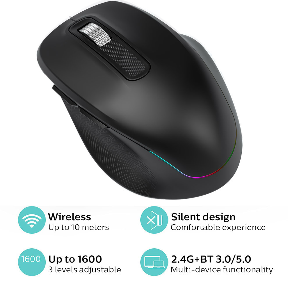 Ergonomic 2.4G Wireless & Bluetooth Dual Mode RGB Backlit Mouse with Type-C Charging