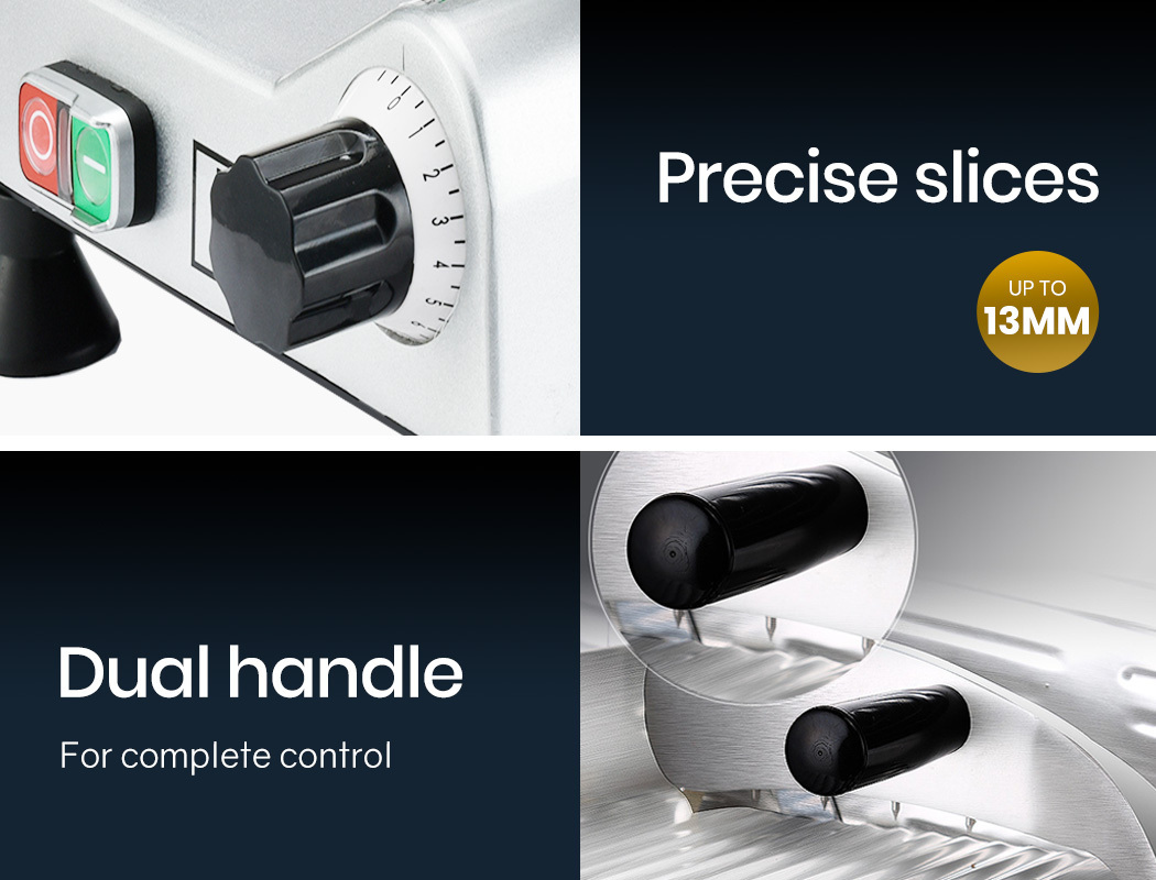 Eurochef Commercial Food Slicers are renowned for robust design, quality, and superb results, and the EUC-CMS-2 Electric Meat Slicer is no exception. It’s crafted with food industry grade stainless steel components and boasts 280W copper core motor, making it a powerful, dependable machine with a compact footprint!