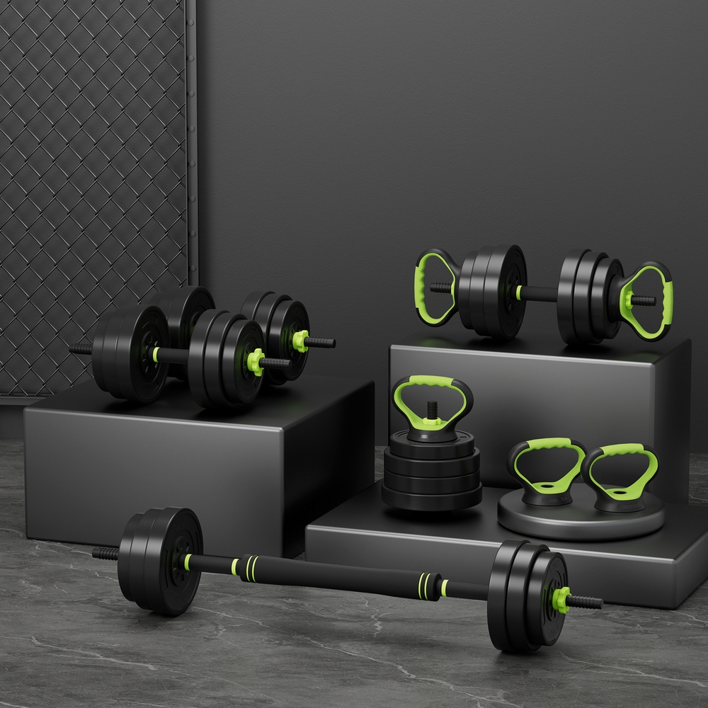 For a versatile weightlifting workout, the Everfit 7-in-1 Weight Set is an ideal fitness companion. Each weight is made from heavy-duty cast iron material, making them built to last. The set comes with all the connections and attachments you need to use the weights in a variety of ways: as dumbells, barbells, kettlebells, push-up stands and standard weight plates. The weight plates are easy to attach and remove, so you can adjust your weights to your exact fitness specifications – up to 25kg. With a foam-covered barbell bar and non-slip dumbbell handles, the weights are easy to grip and comfortable to hold throughout the exercise. The set is simple to assemble and store, so you can easily incorporate the set into your daily routine without taking up space. Our versatile set is ideal for home gym junkies interested in weight loss, strength training, endurance training, muscle gain and general cardiovascular performance. For a comprehensive workout without leaving the gym, Everfit has you covered with our 7-in-1 Weight Set.