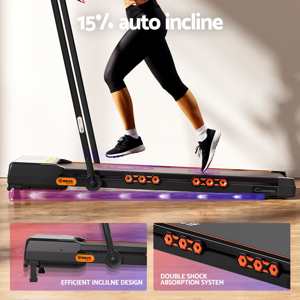 Everfit Treadmill Electric Walking Pad Auto Incline Foldable for Home Gym Black