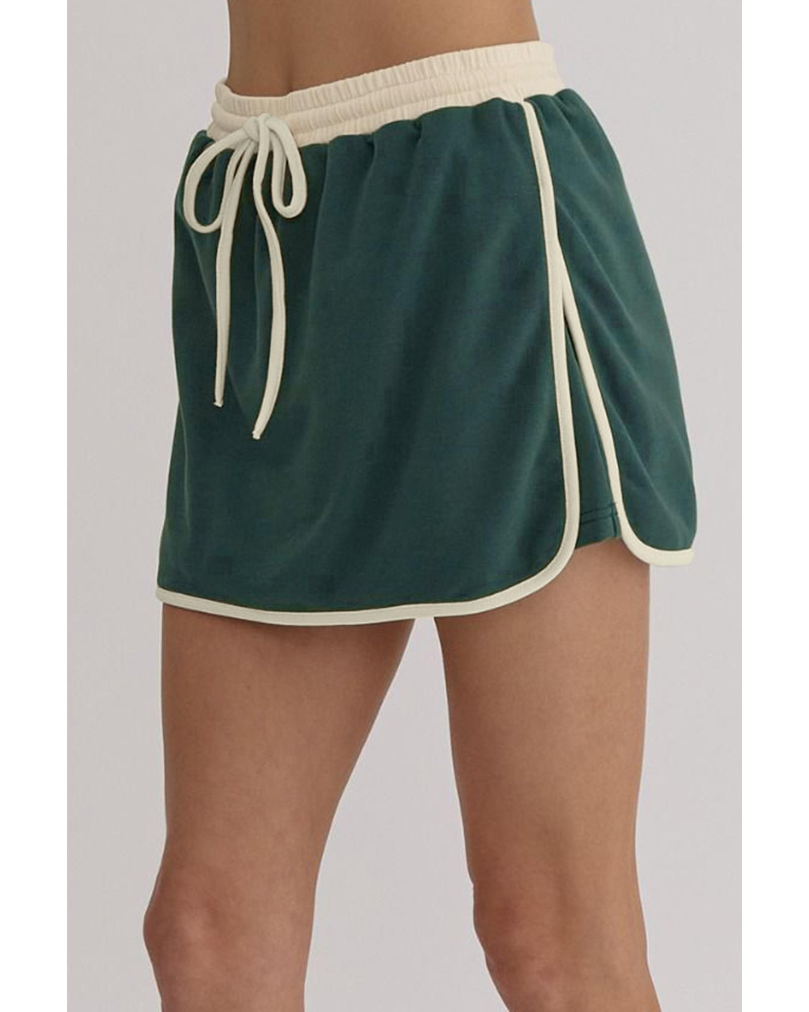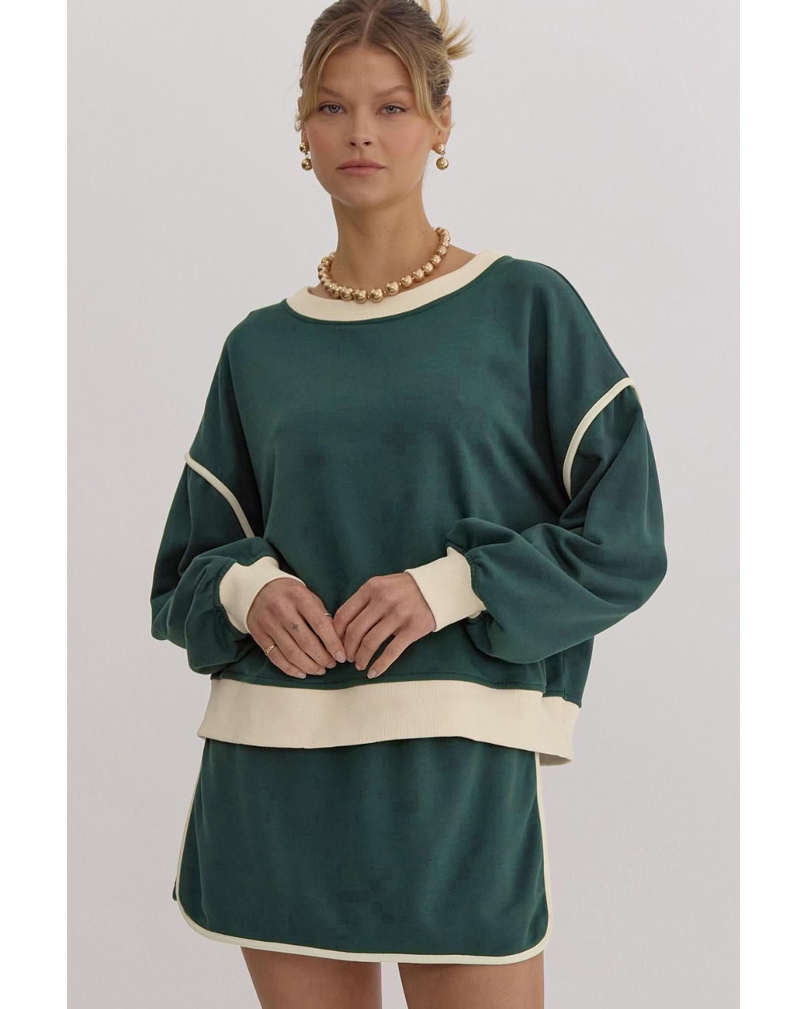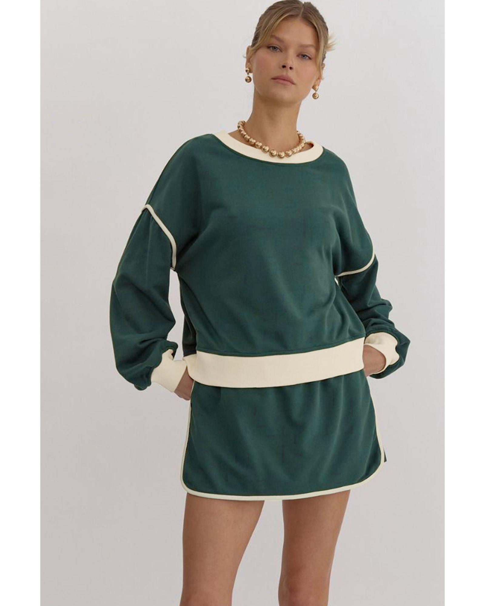 Evergreen Color Contrast Loose Pullover and Lace-up Waist Skort Set – S