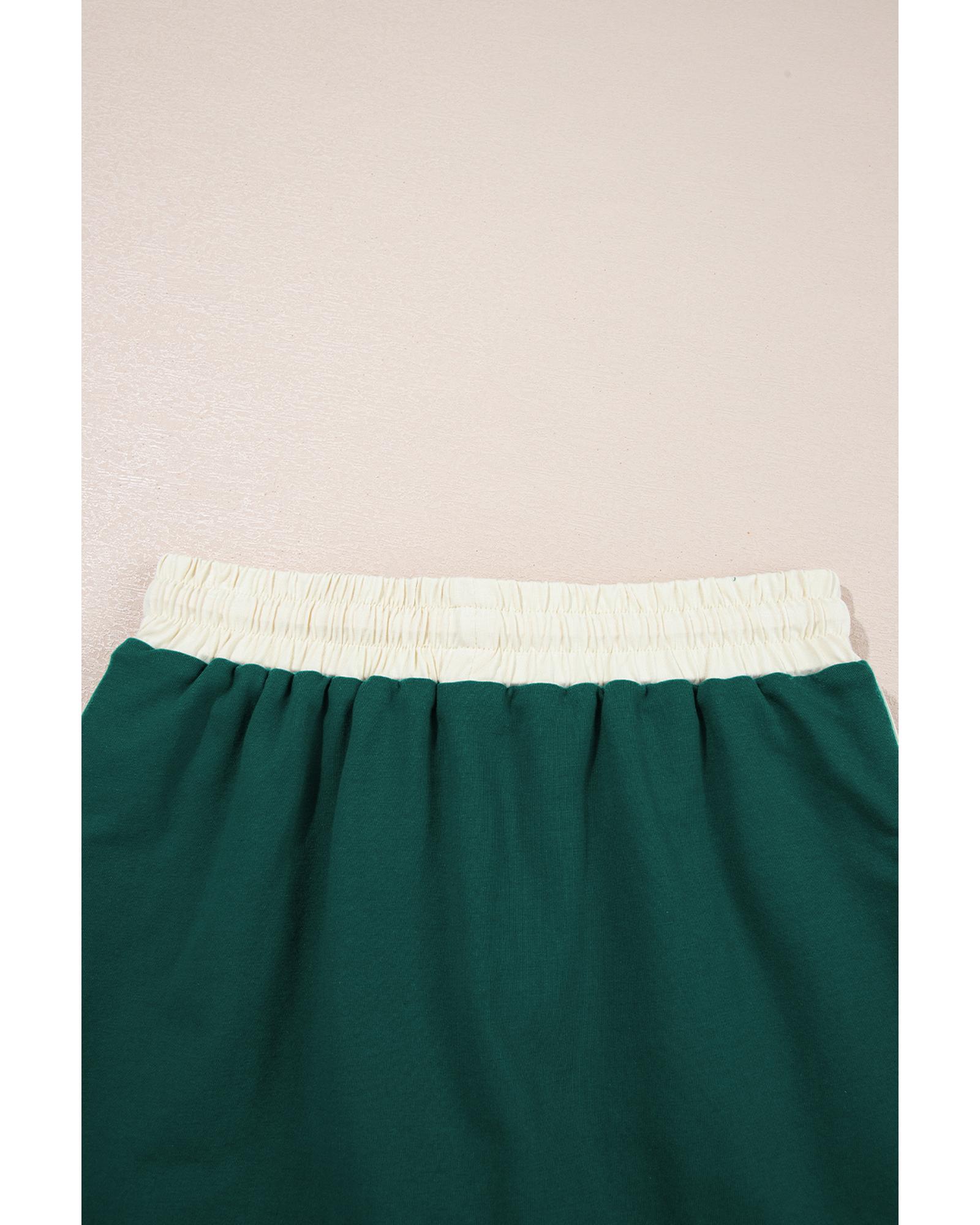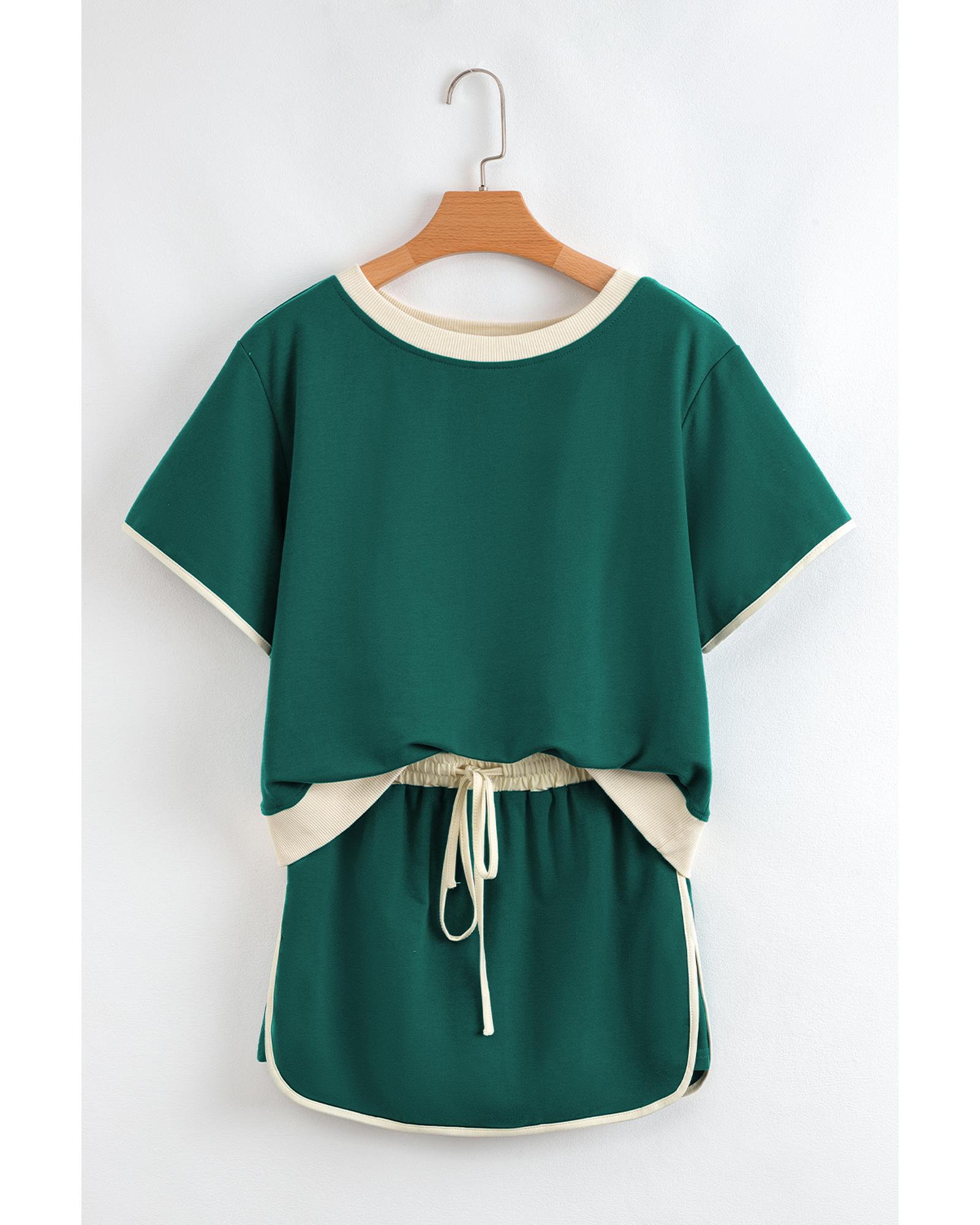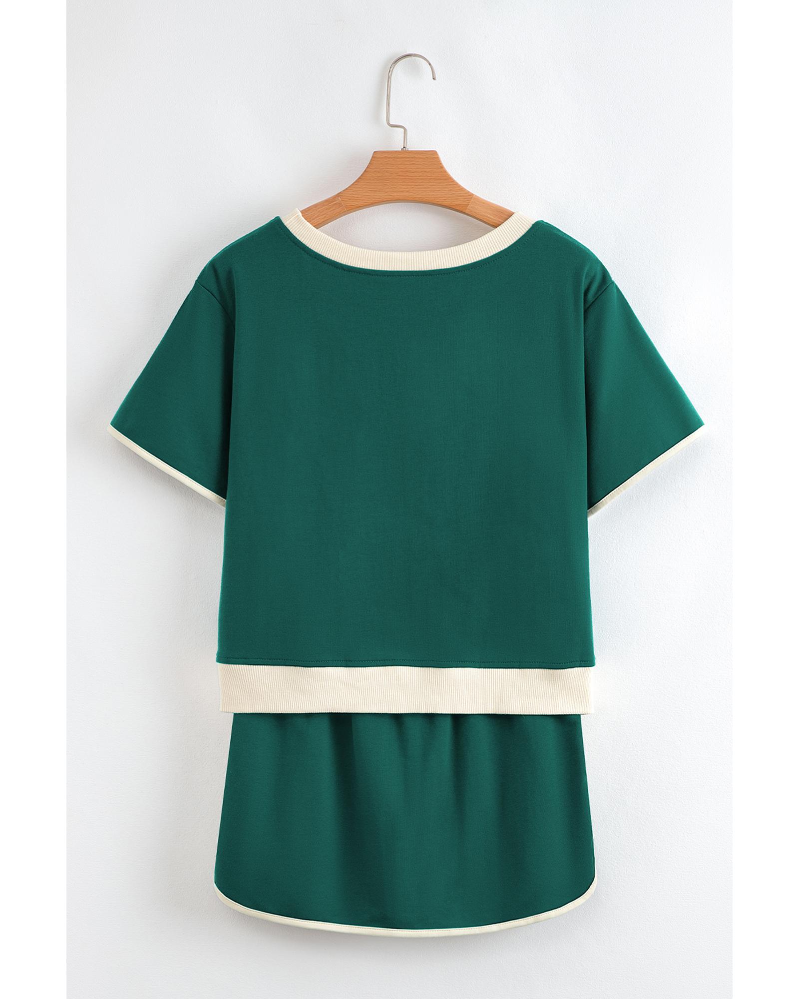 Evergreen Colorblock Edge Drop Shoulder T Shirt and Skirt 2Pcs Set – M