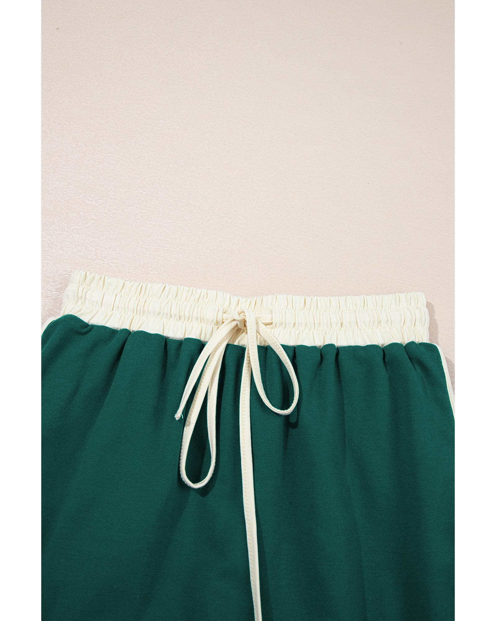 Evergreen Colorblock Edge Drop Shoulder T Shirt and Skirt 2Pcs Set – S