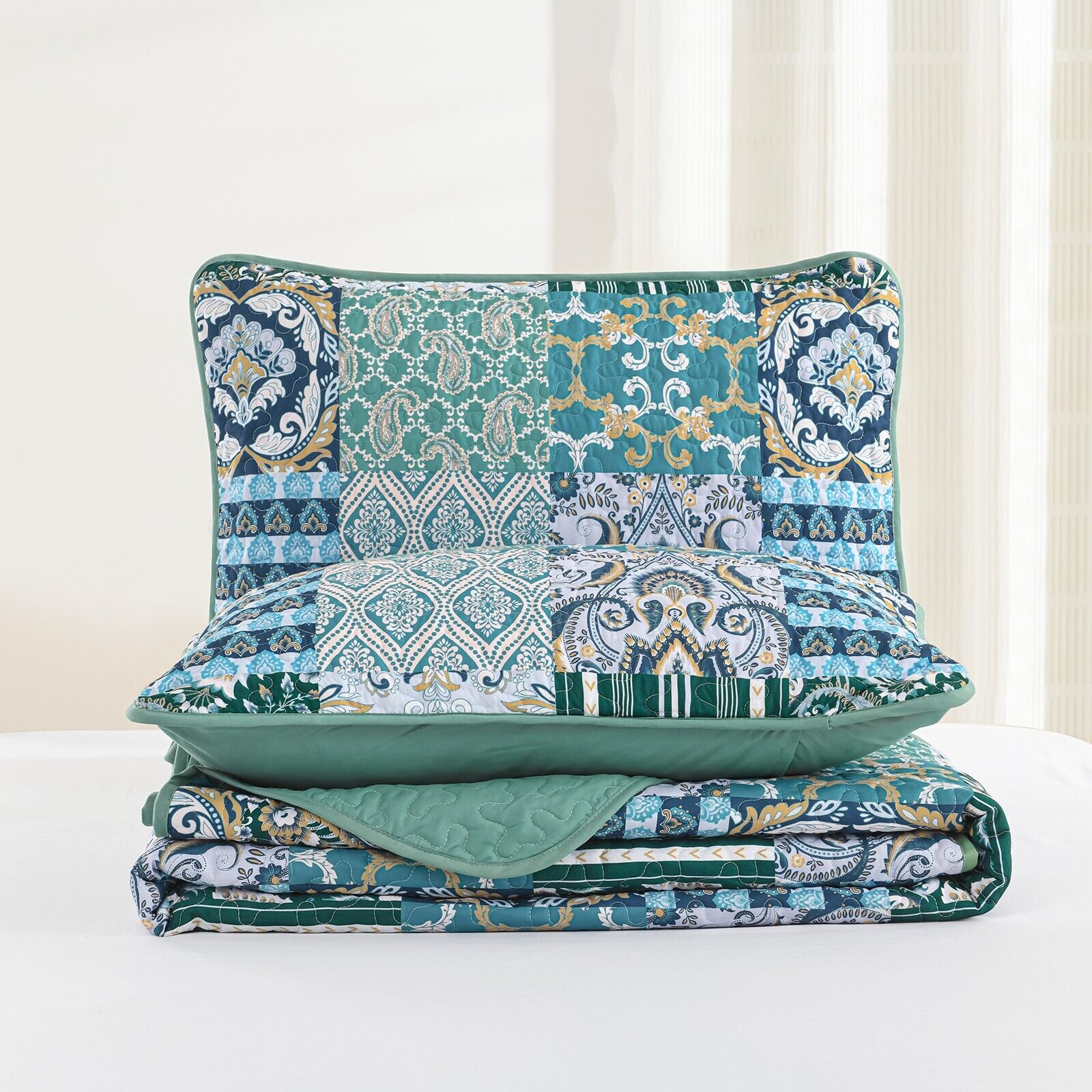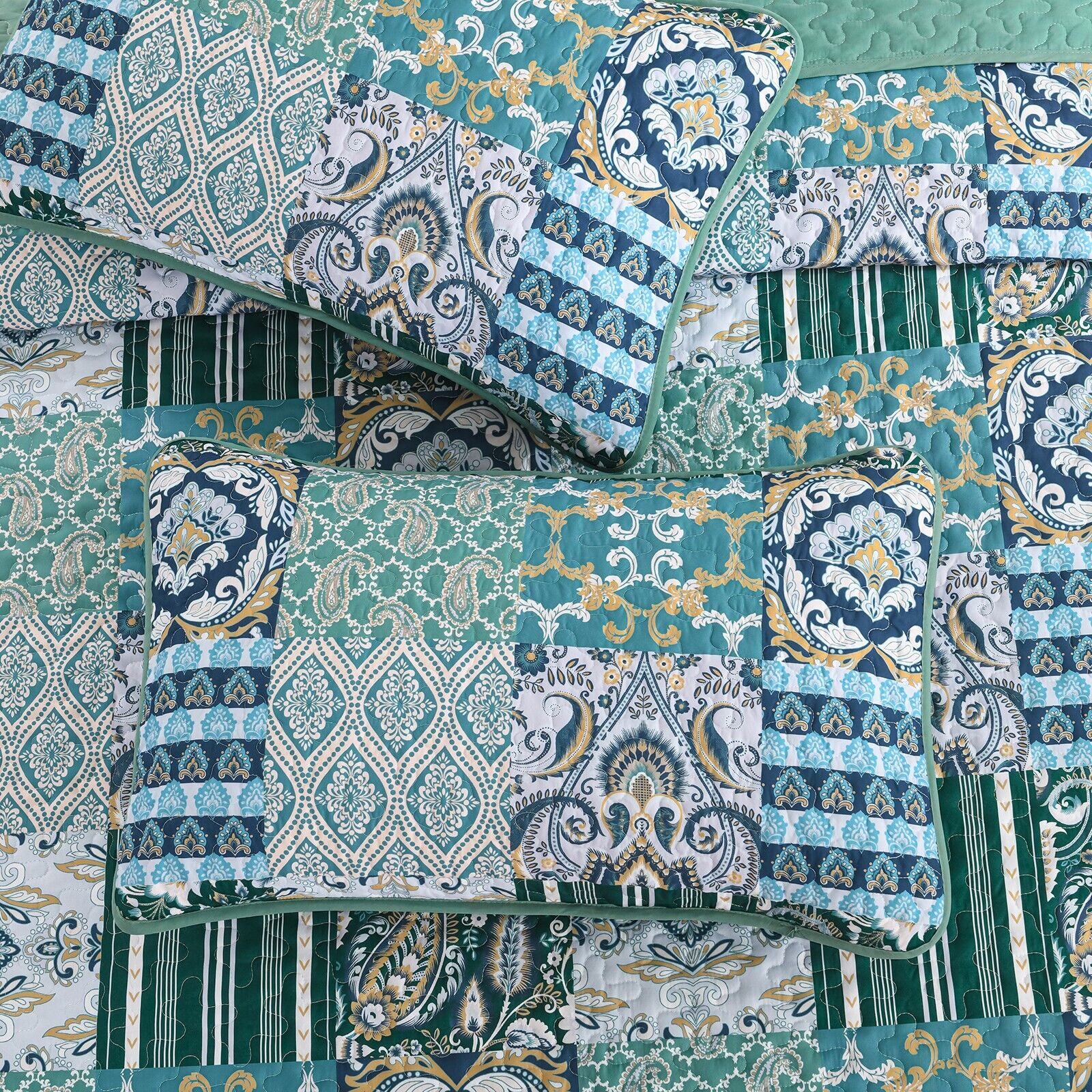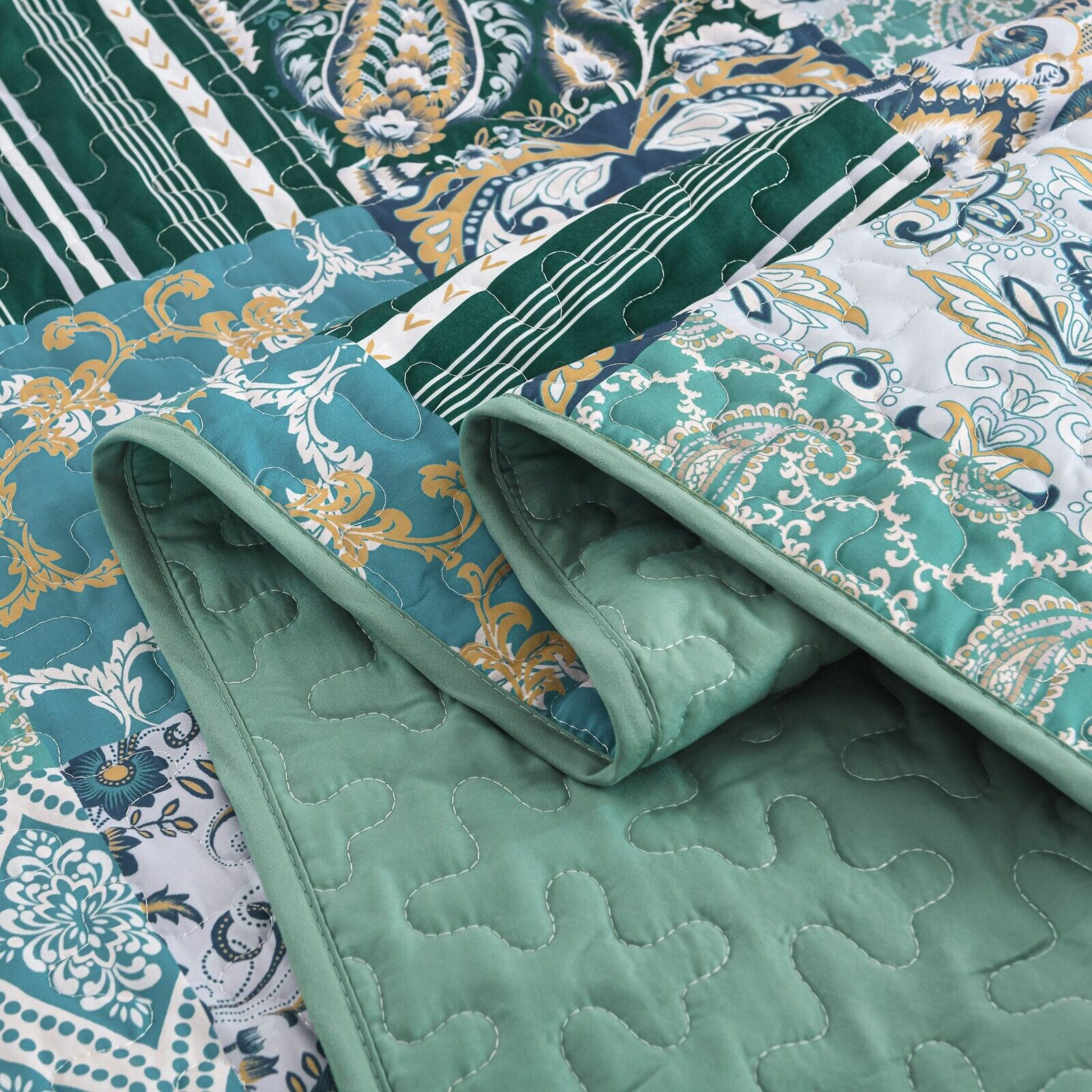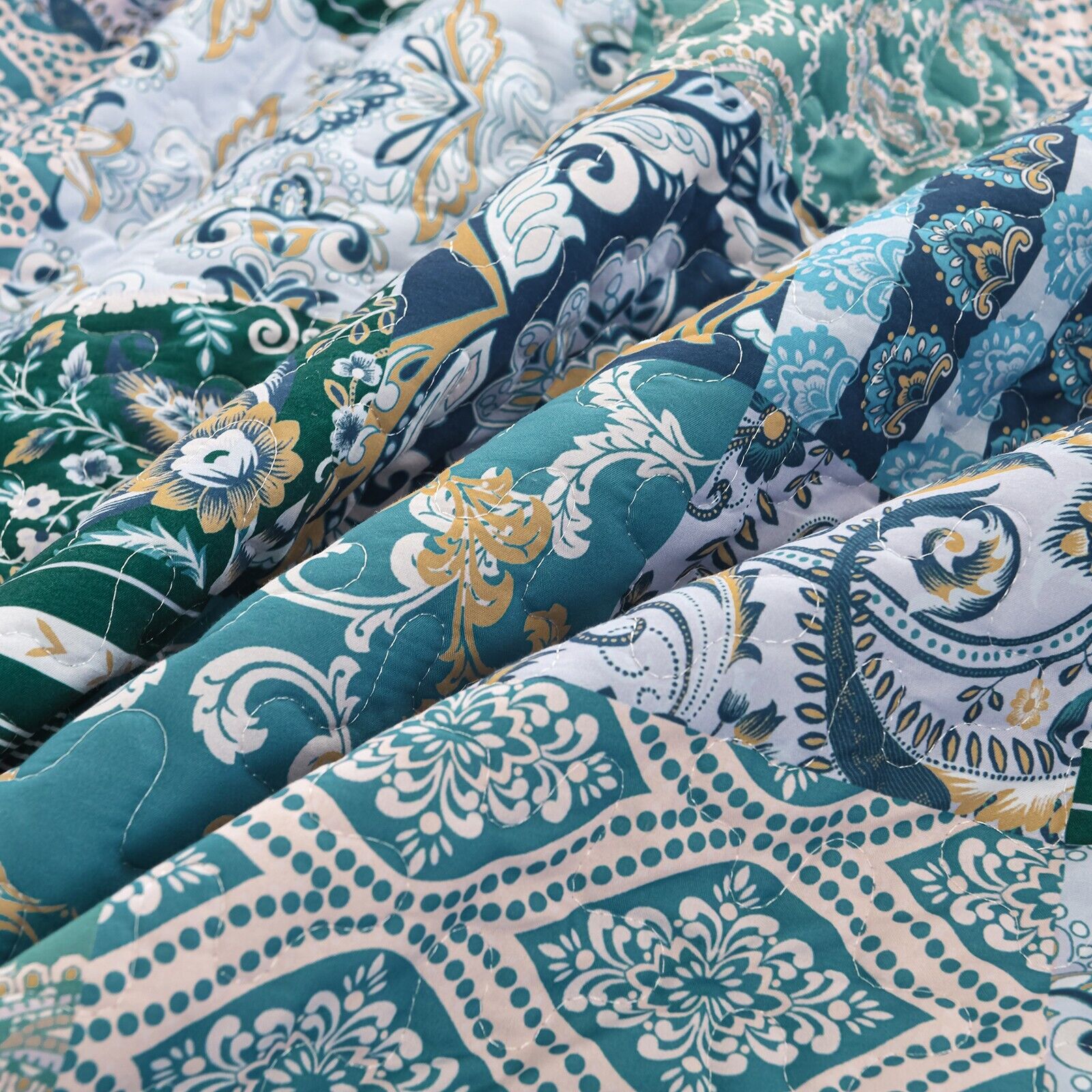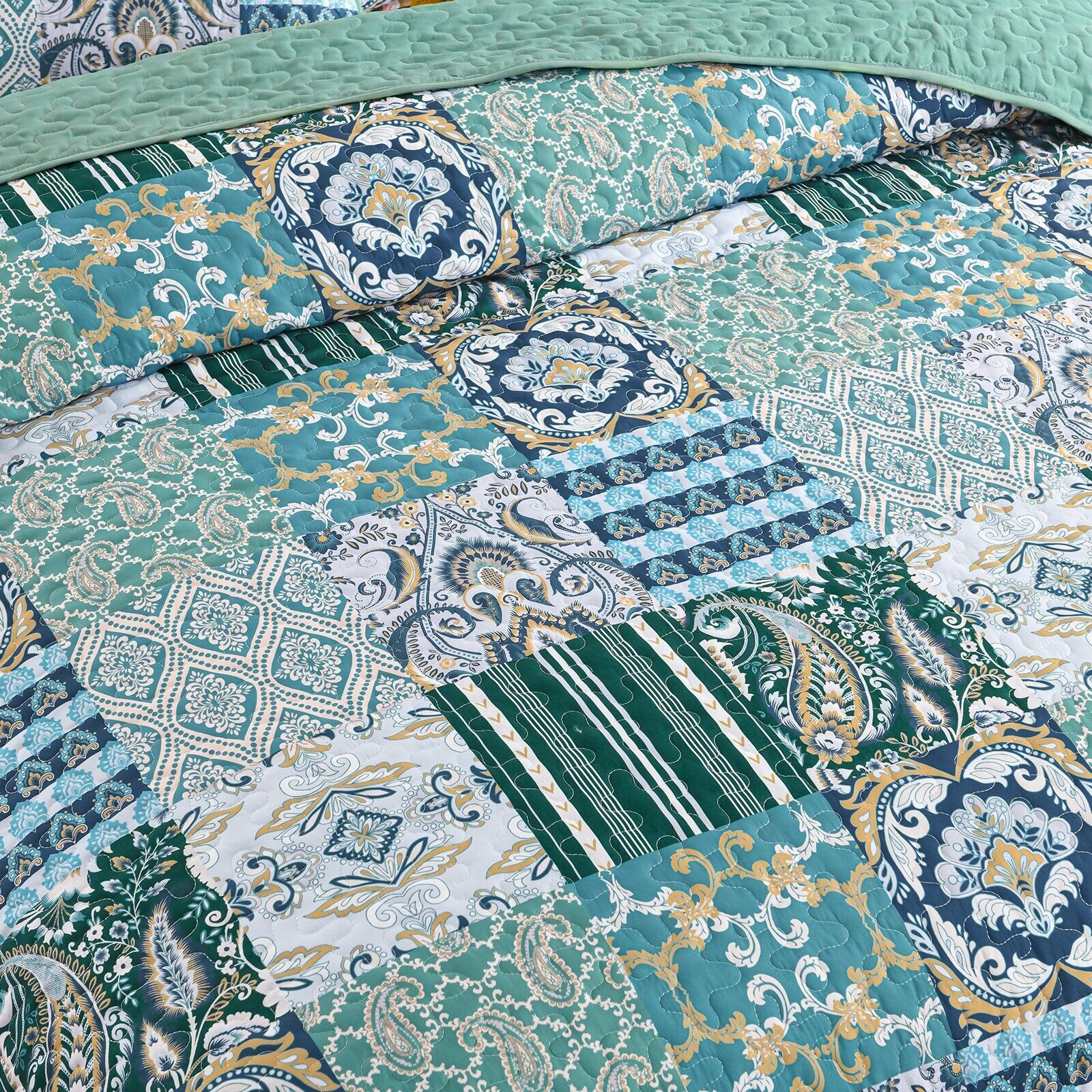 Vintage Delicate Teal floaral Pattern 3 Pc Bedspread & Pillow Cover Set