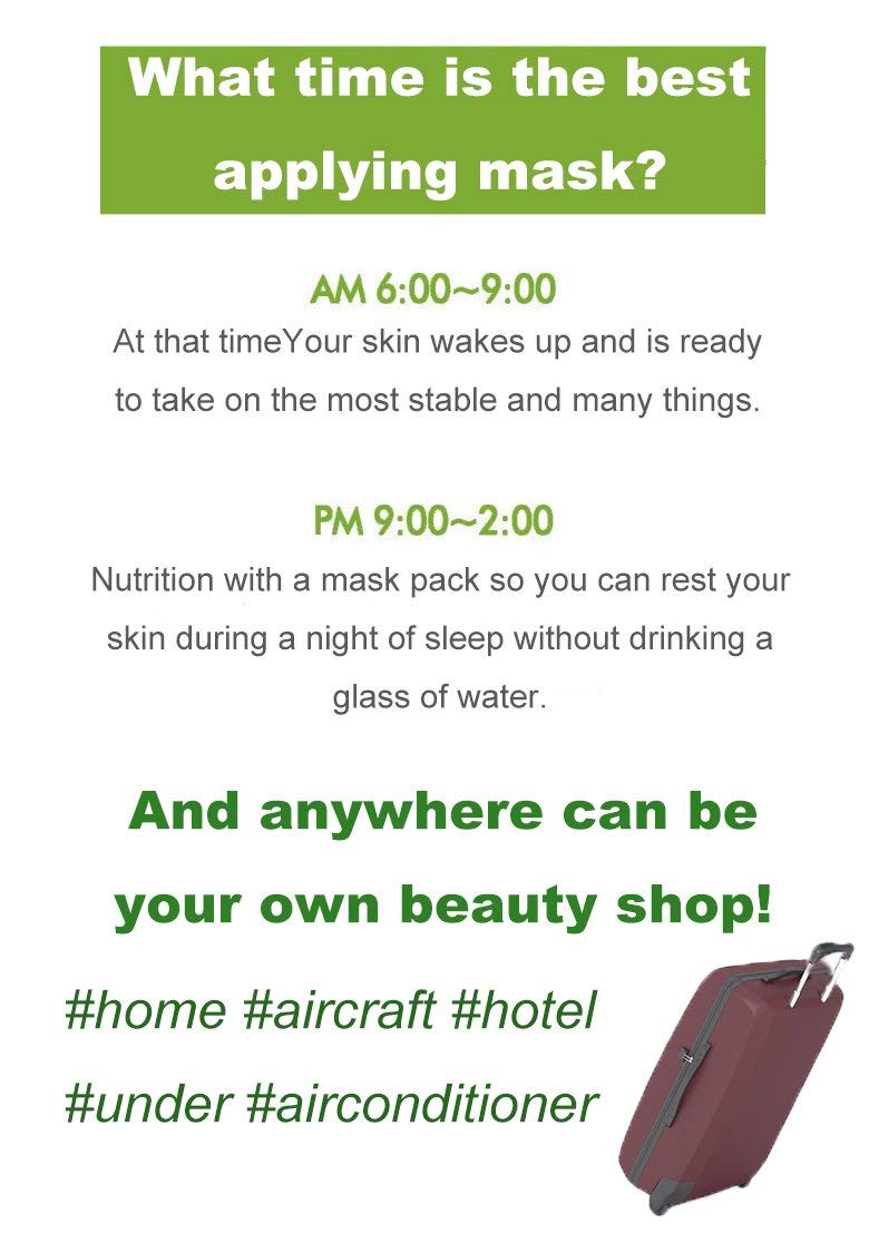 You can get clear and elastic skin within 20 minutes in anywhere – in dry aircraft, in hotel and for relaxing in business trip, you can care your skin easily with this effective facial mask.