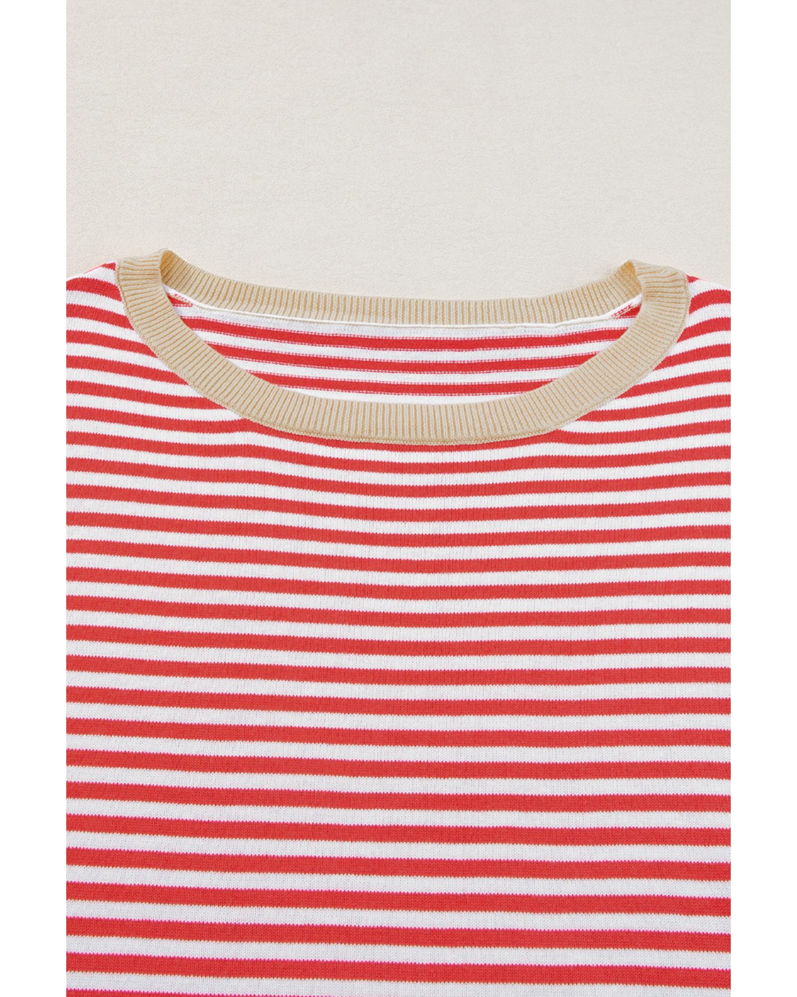 - Fiery Red Contrast Trimmed Striped Drop Shoulder Sweater