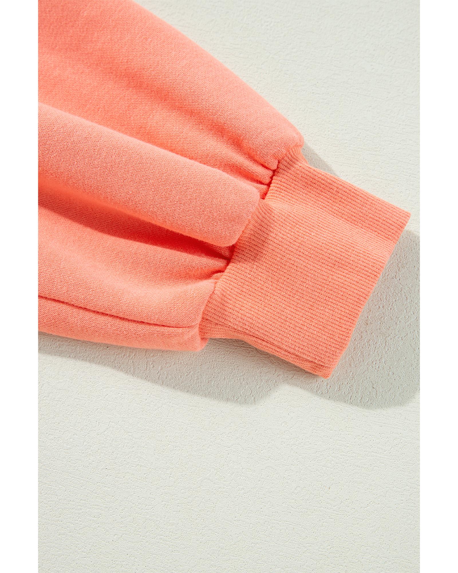 Flamingo Rainbow Striped Sleeve Crew Neck Loose Sweatshirt – S