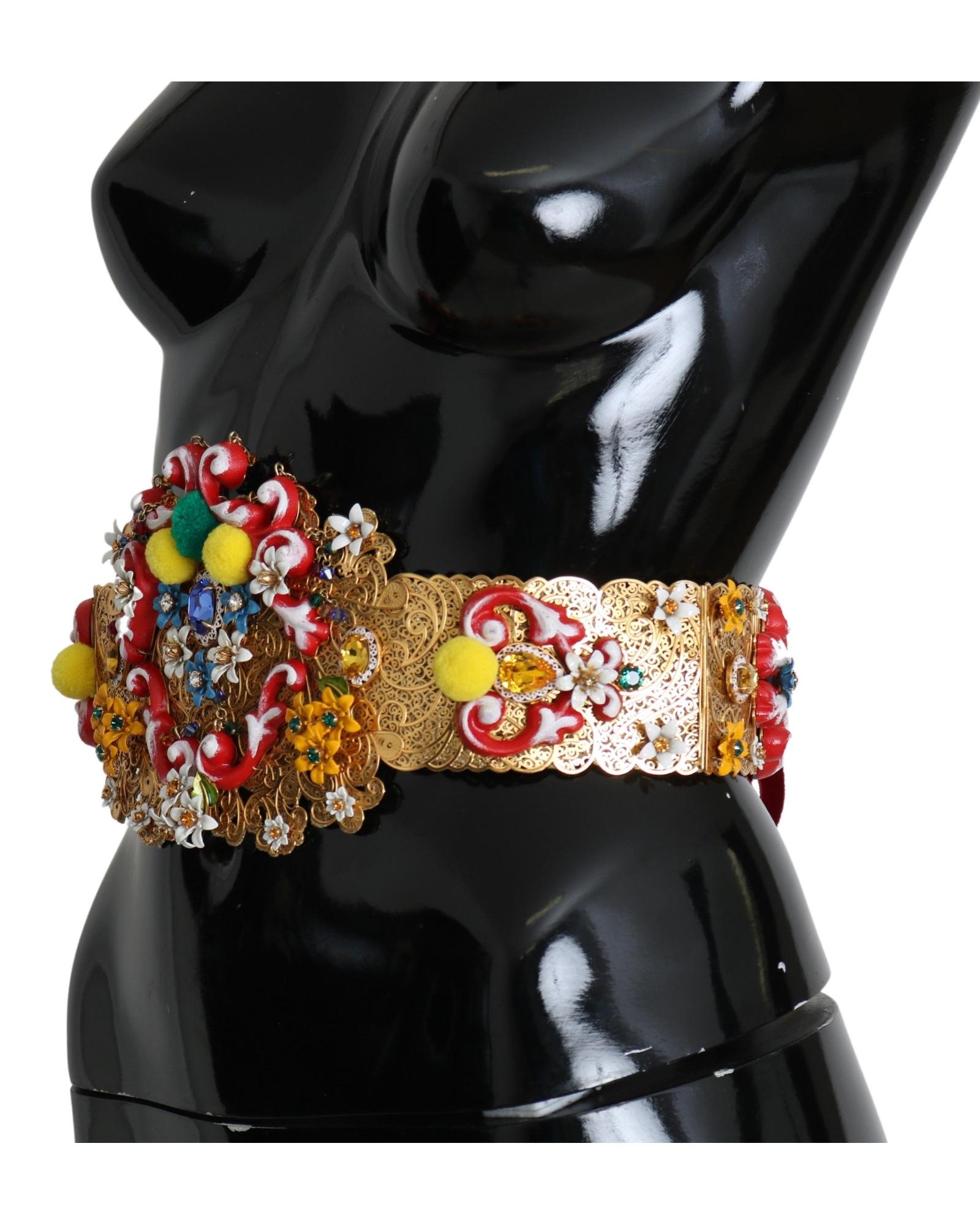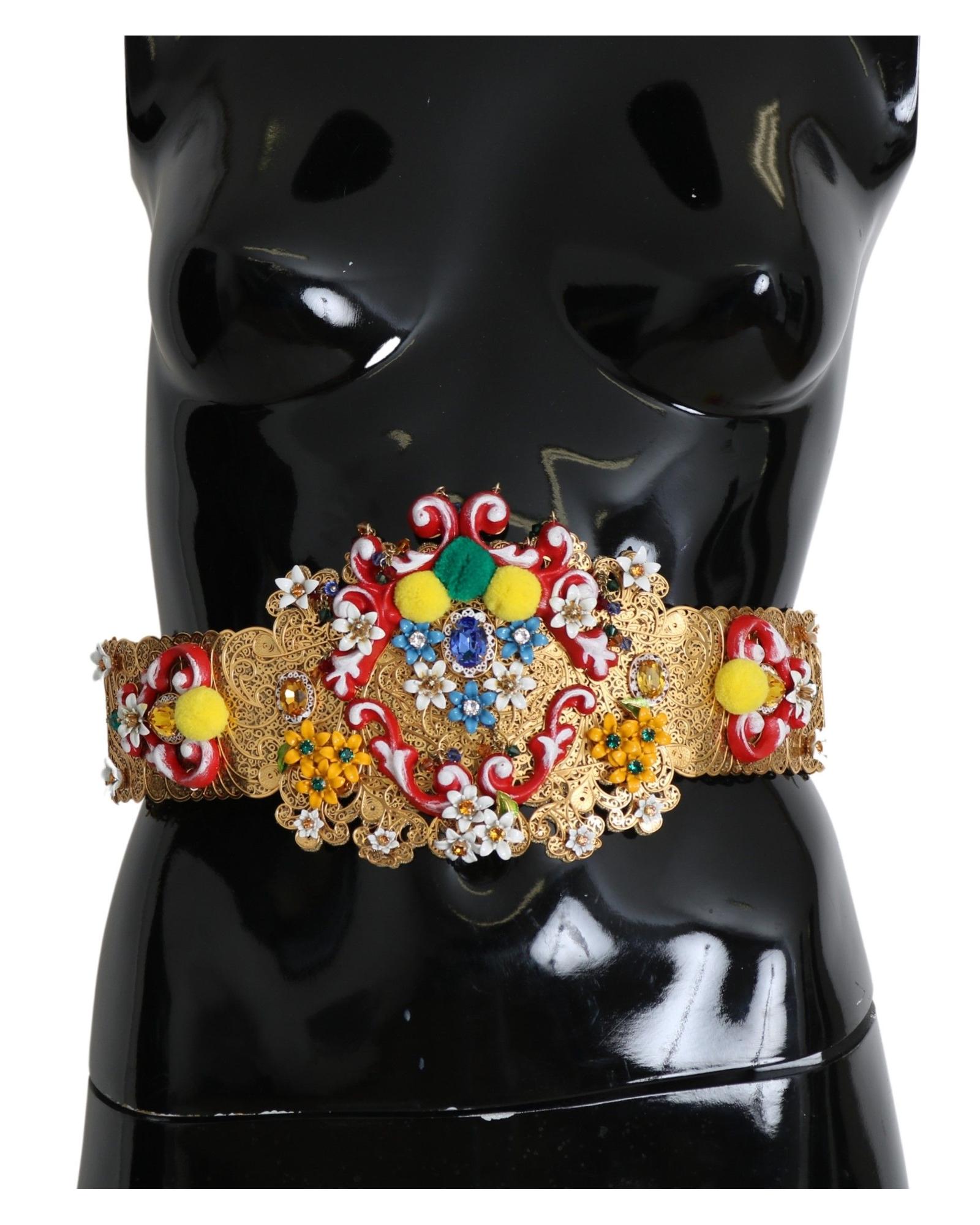 Floral Crystal Embellished Wide Waist Belt 42 IT Women