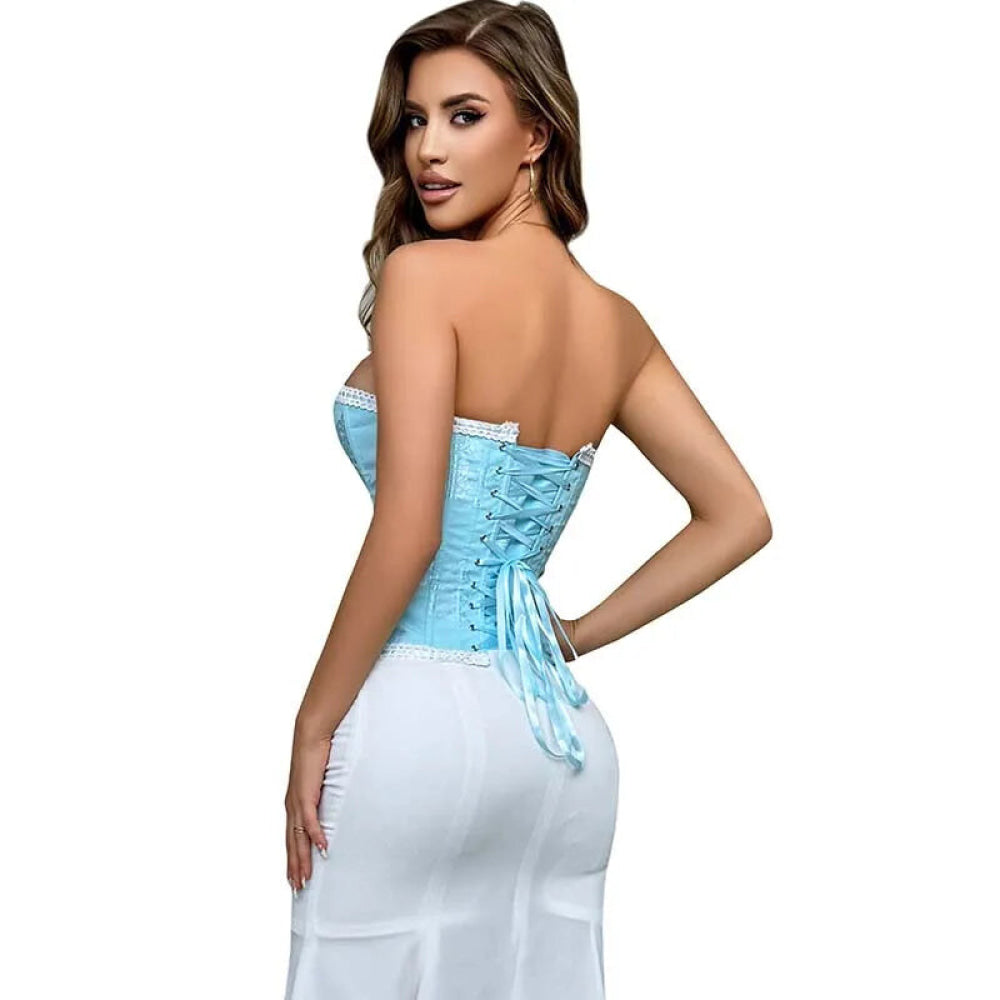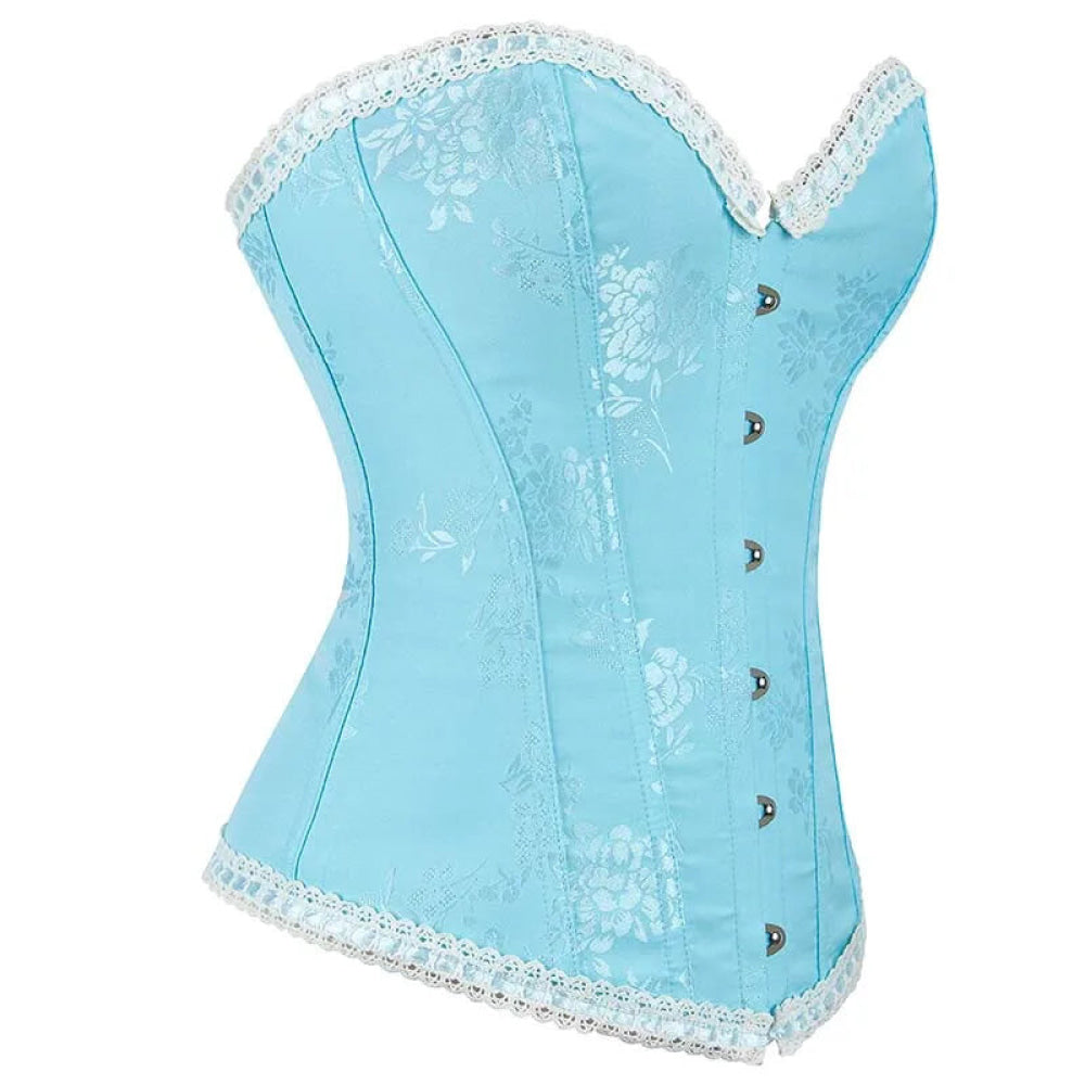 • 1 x Floral Jacquard Ruffled Boned Corset Top Plus Size Xs-Xxxl Sky Blue Wedding Bridal Body Shapewear