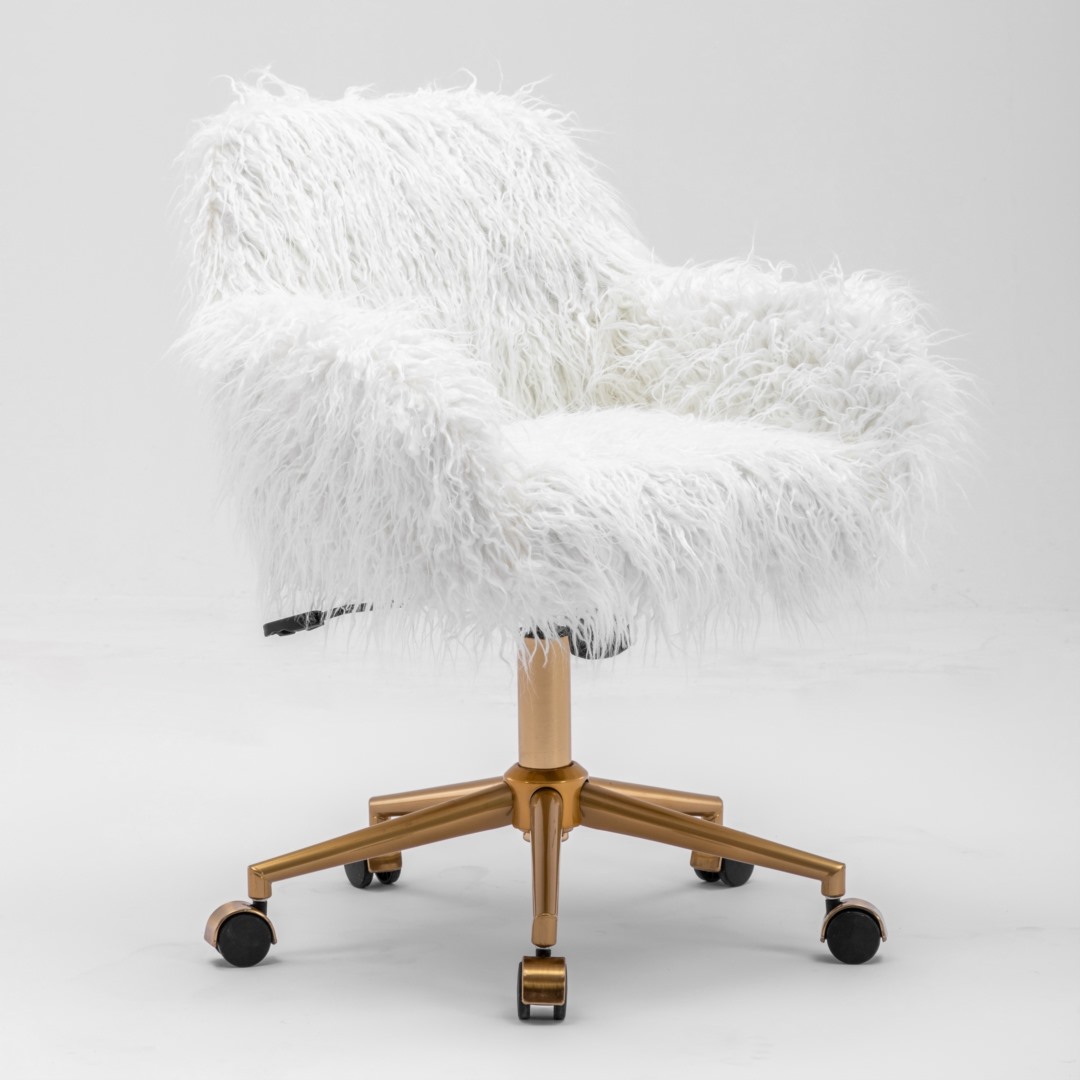 Fluffy Office Chair Faux Fur Modern Swivel Desk Chair for Women And Girls-White