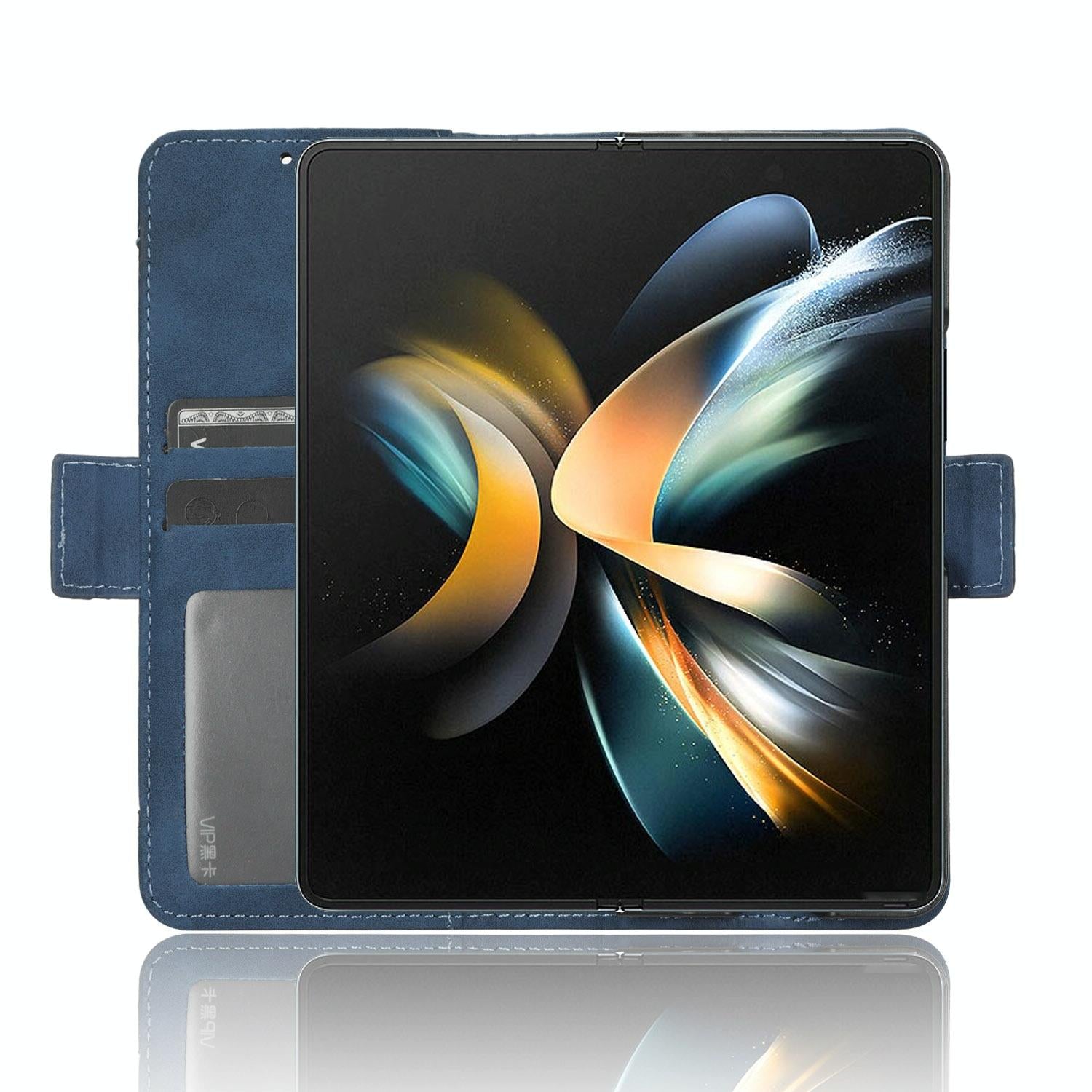For Samsung Galaxy Z Fold4 5G Leather Phone Case With Card Slots And Calf Texture – Blue