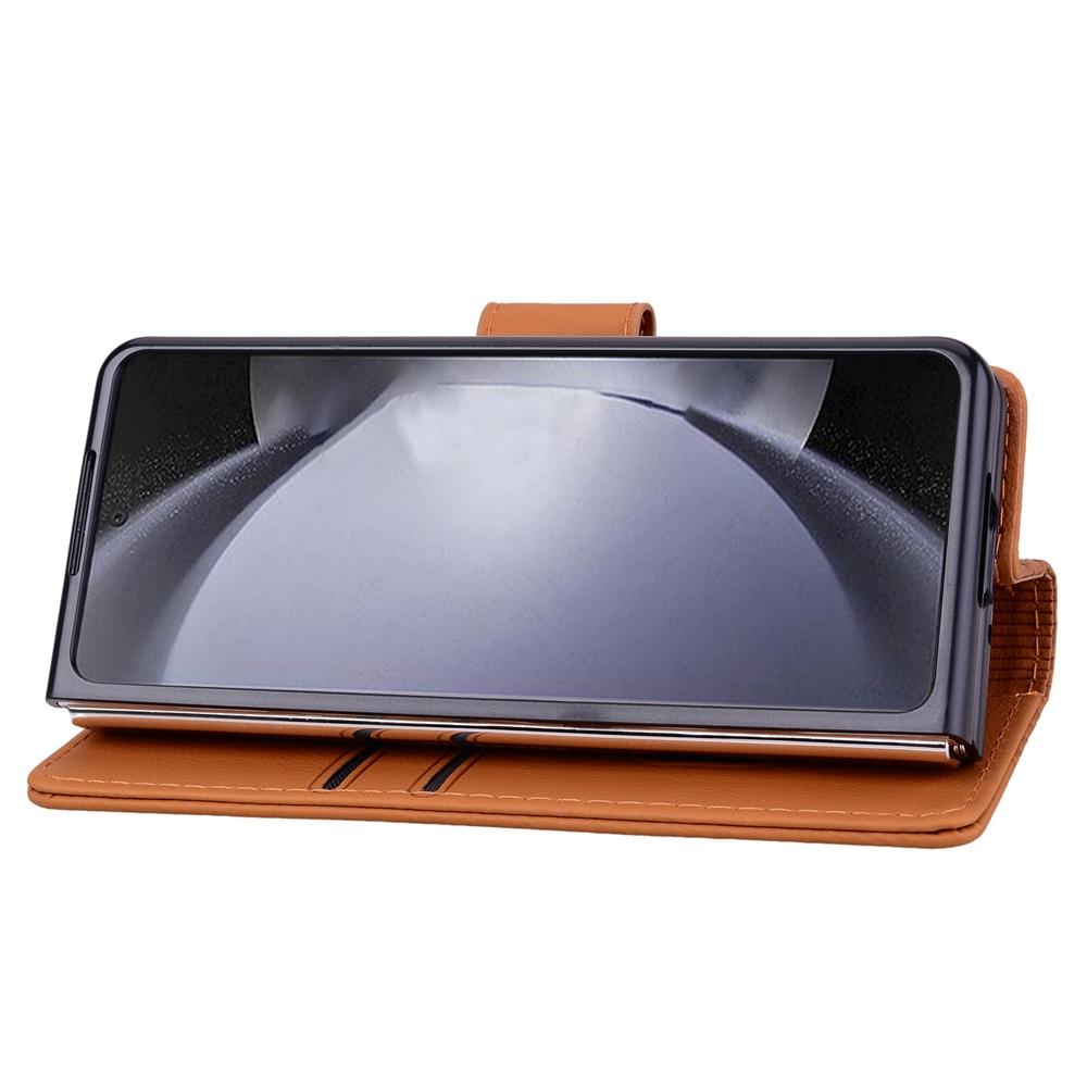 For Samsung Galaxy Z Fold4 5G Leather Phone Case With Diamond Buckle And Lanyard – Brown