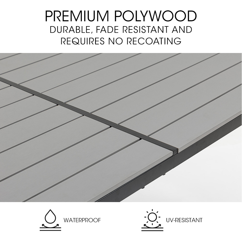 Crafted from premium polywood, ensuring durability, fade resistance, and without the need for any upkeep. The Fortia Outdoor Dining Table has a strong stylish, rust-resistant powder-coated frame and non-marking feet to protect surfaces like tiles or decking.