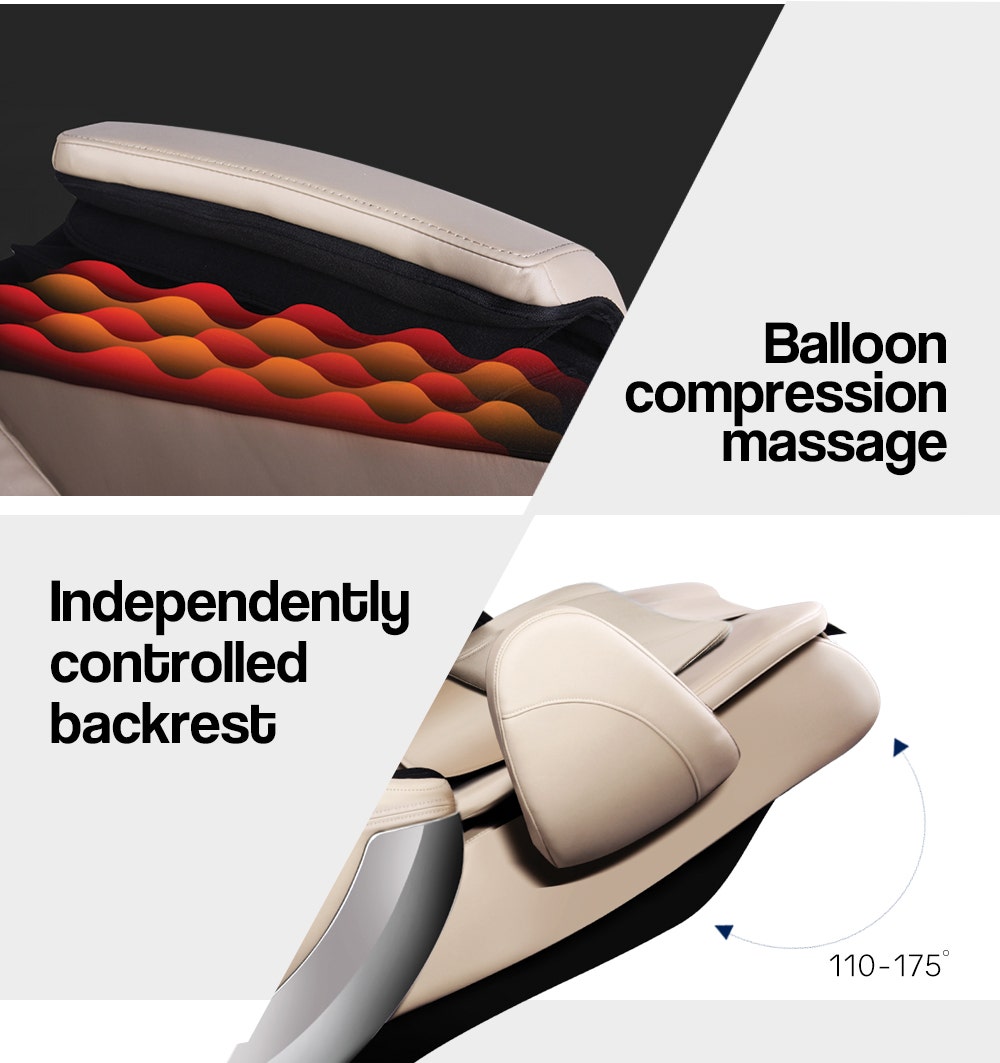 Drift into its capsule-like seat and immerse yourself in complete and total relaxation as the supple exterior softly supports your entire body. Feel the stress melt away as the Advanced Power-Ball Technology and heating function give you a revitalising kneading massage that simulates the gentle yet firm touch of 14 hands all at once! This combines seamlessly with a system of airbags that provide rhythmed pressure on your shoulders, forearms, buttocks and legs to promote blood circulation and relieve any muscle fatigue.