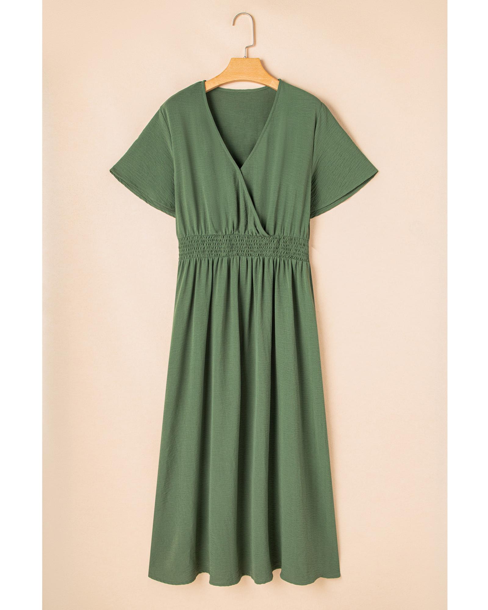Four Leaf Clover Surplice Neckline Shirred High Waist Plus Size Maxi Dress – 3X