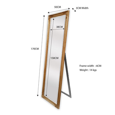 French Provincial Ornate Mirror – Gold – Free Standing 50cm x 170cm