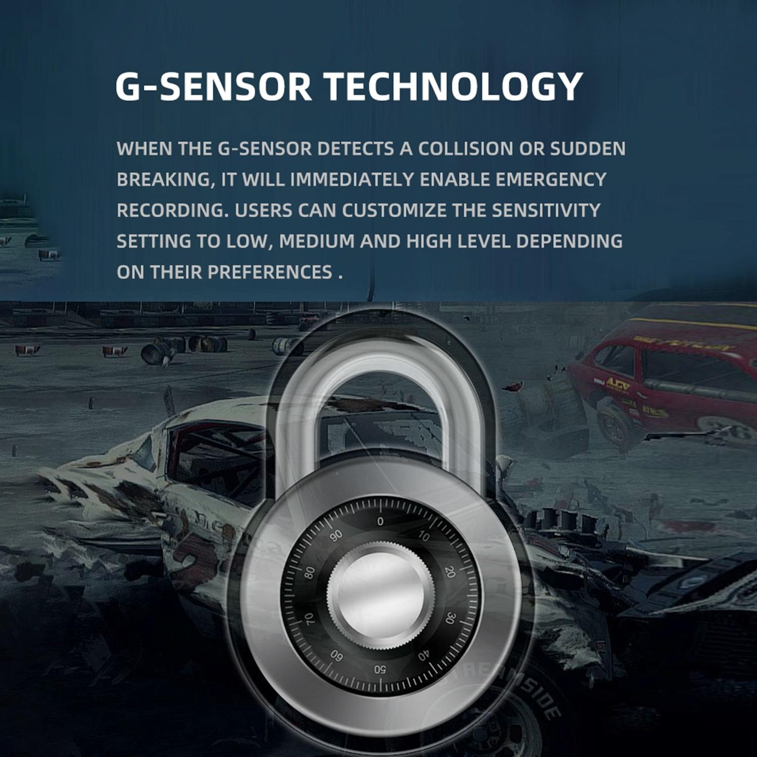 • Loop recording and G-sensor automatically overwrite the earliest video and lock and store videos in case of sudden shock.