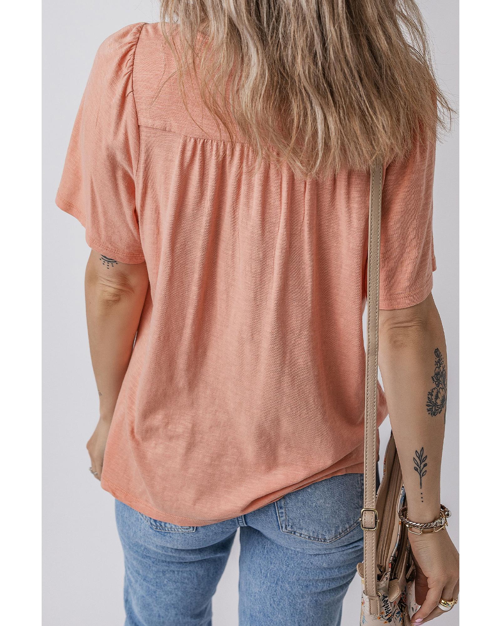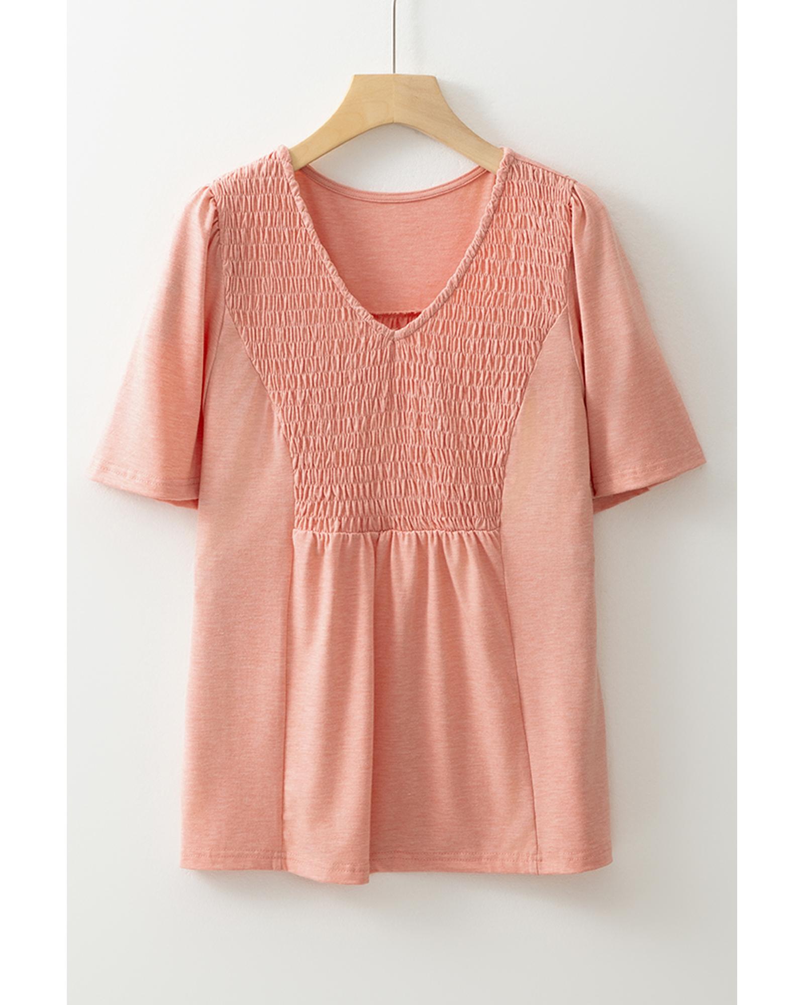 Fushia Smocked Front V Neck Pleated Babydoll Short Sleeve Top – M